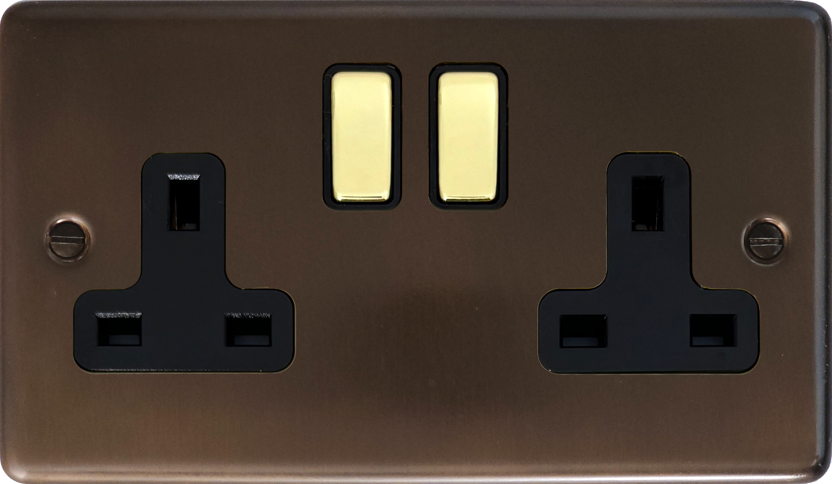 Contour Medium Bronze Double Socket (Black Insert/Polished Brass Switches) - G+H CMBZ310-PB