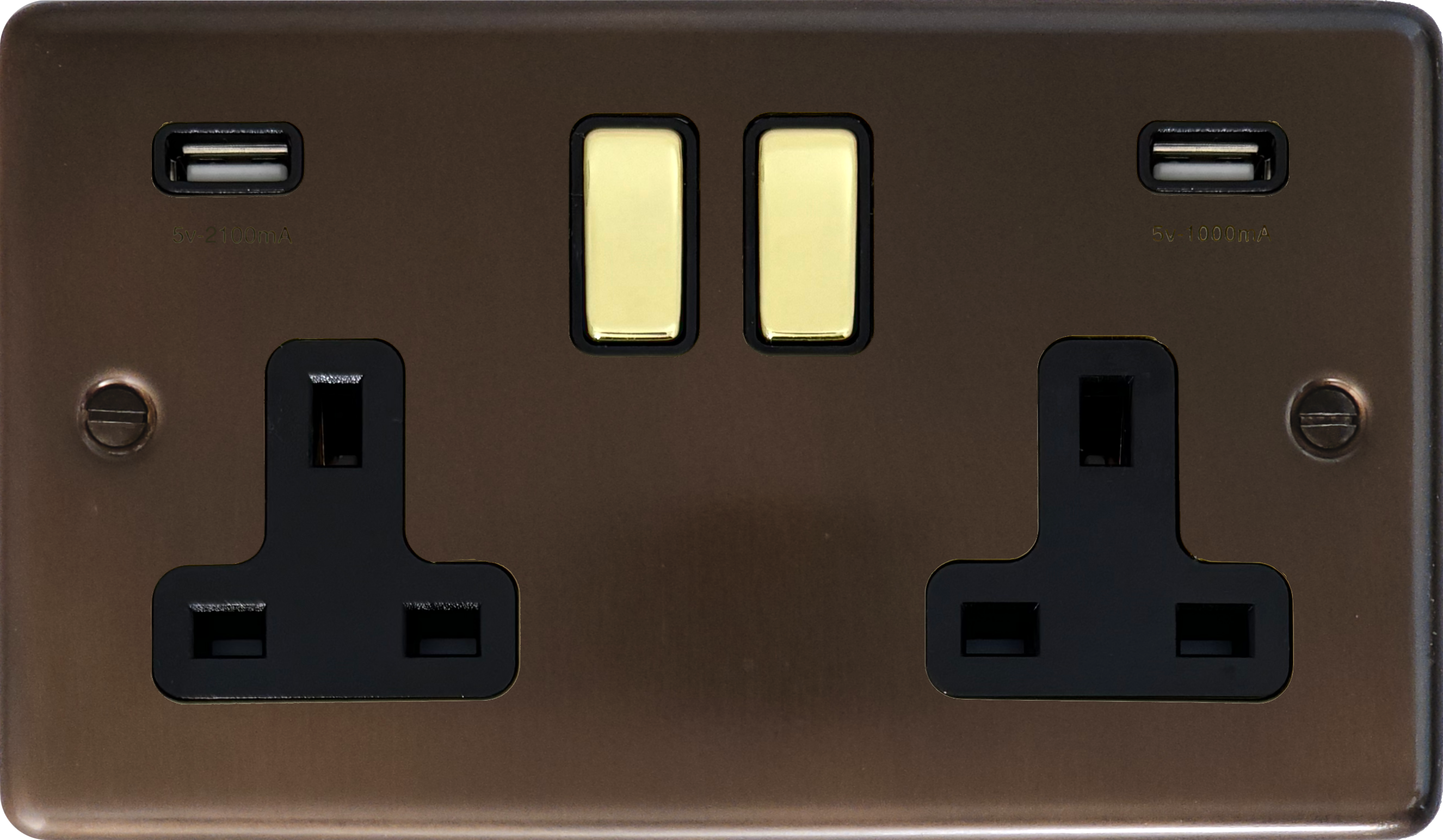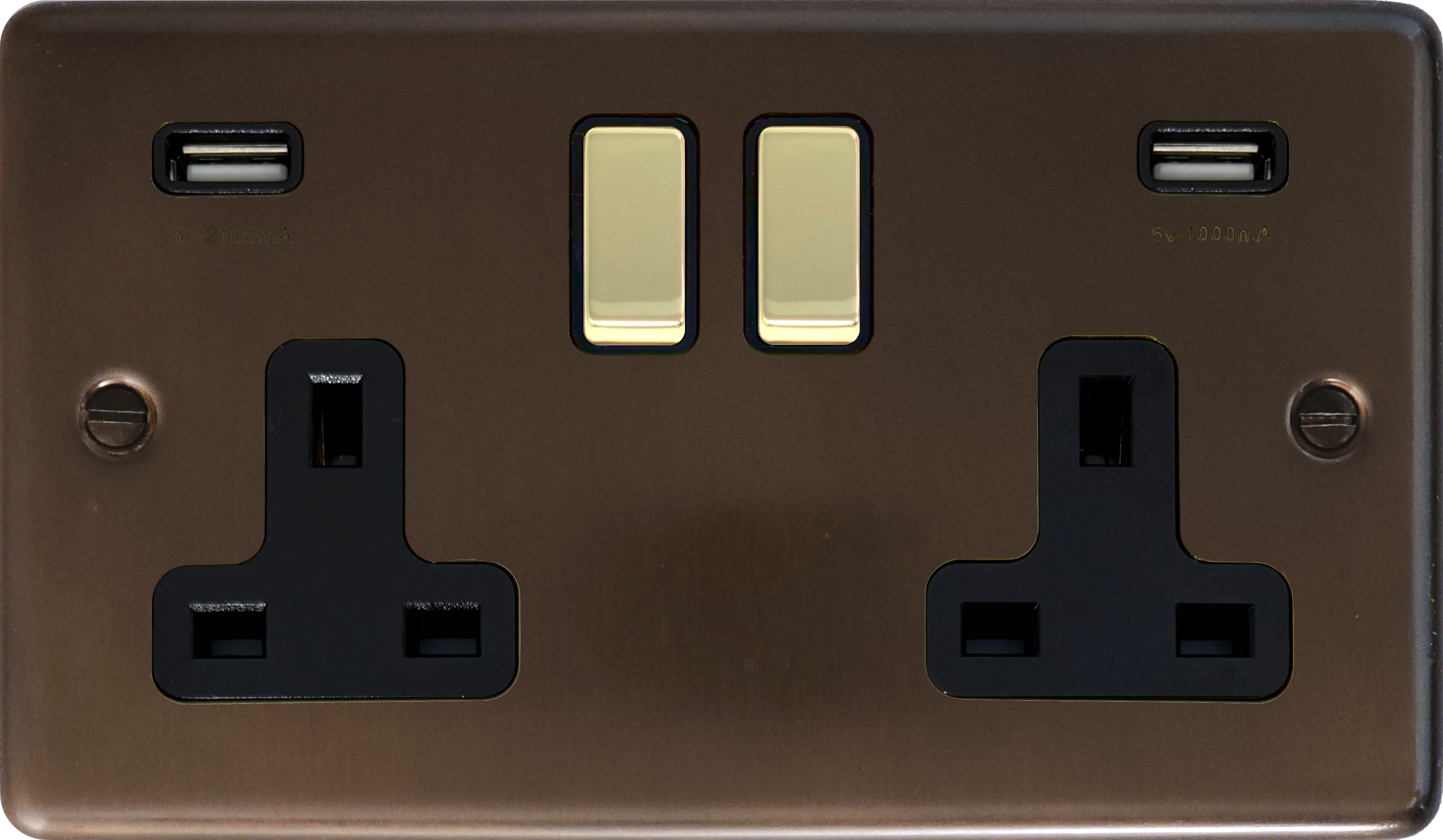 Contour Medium Bronze Double Socket with USB (Black Inserts/Polished Brass Switches) - G+H CMBZ3910-PB