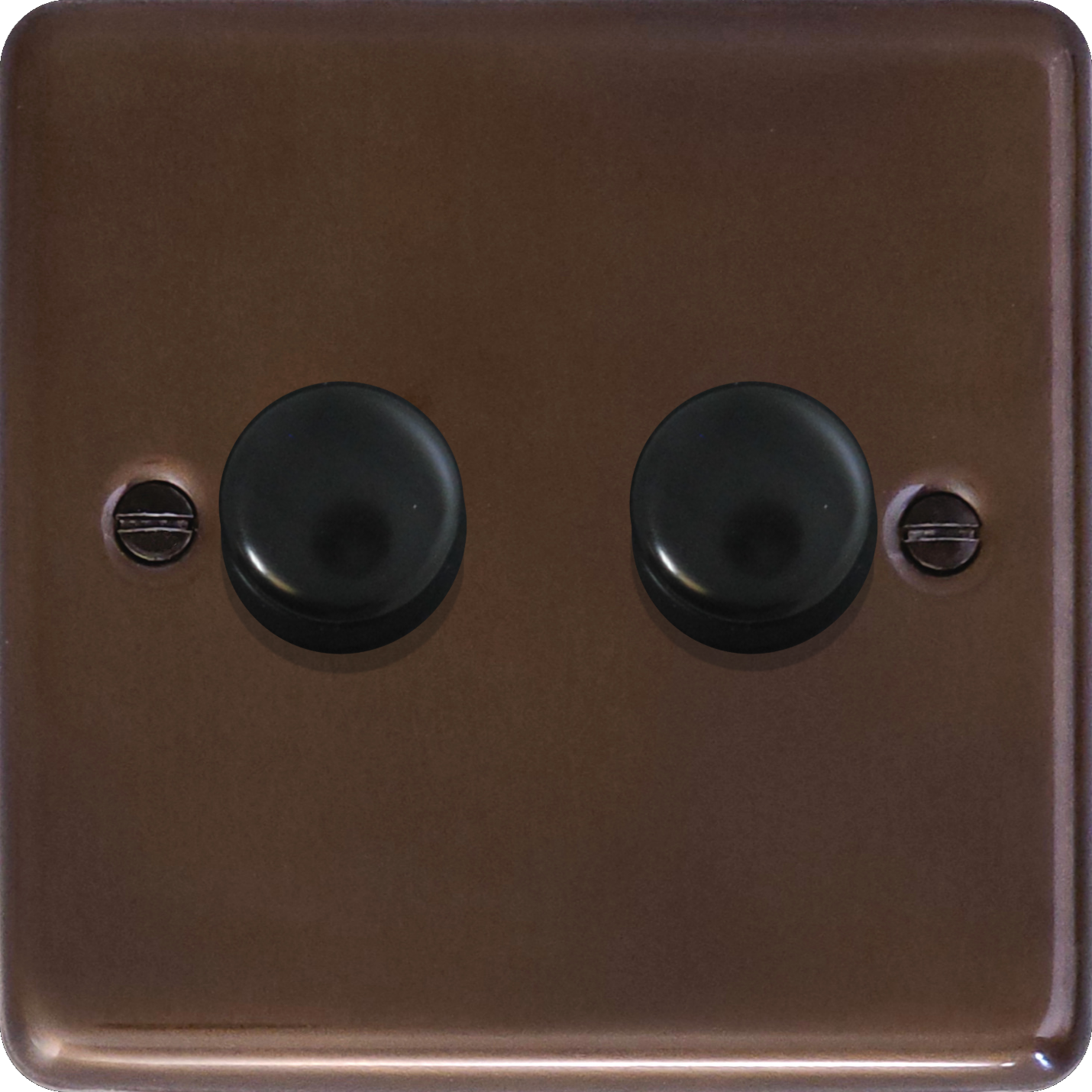 Contour Medium Bronze LED Dimmer (2 Gang/Black Caps) - G+H CMBZ522-BB
