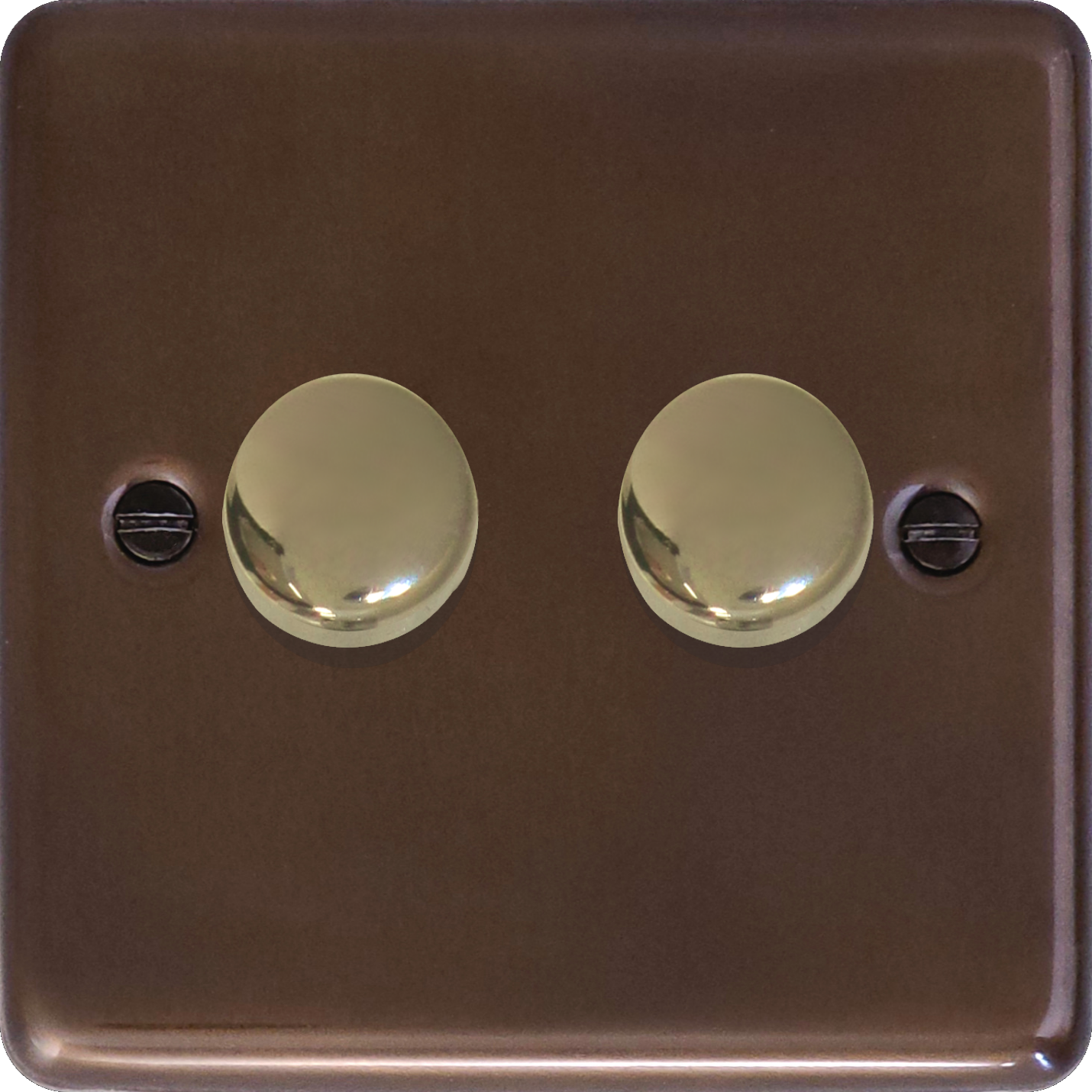 Contour Medium Bronze LED Dimmer (2 Gang/Polished Brass Caps)