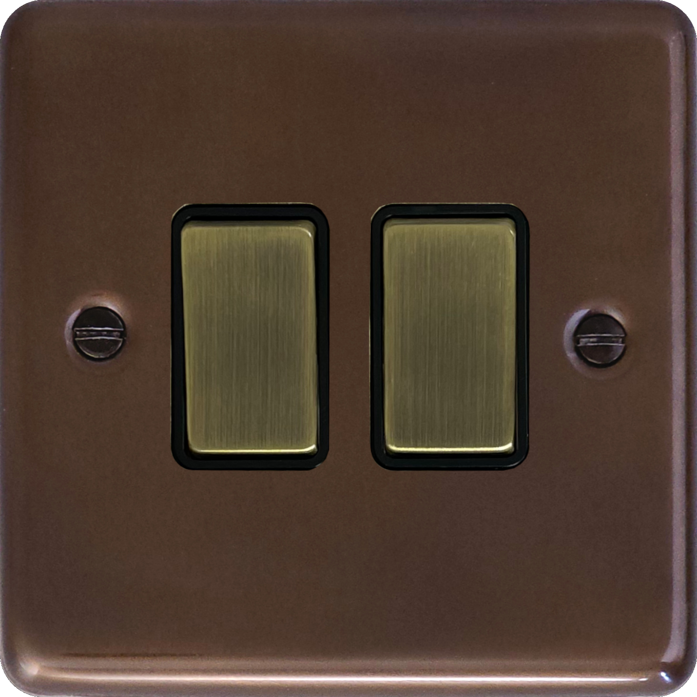 Contour Medium Bronze Light Switch (2 Gang/Black Insert/Antique Brass Switches) - G+H CMBZ302-AB