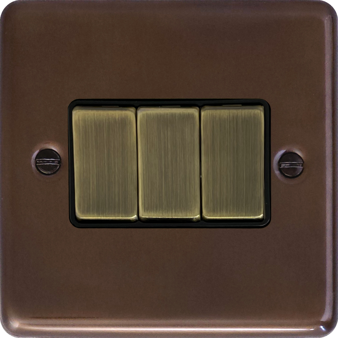 Contour Medium Bronze Light Switch (3 Gang/Black Insert/ Antique Brass Switches) - G+H CMBZ303-AB