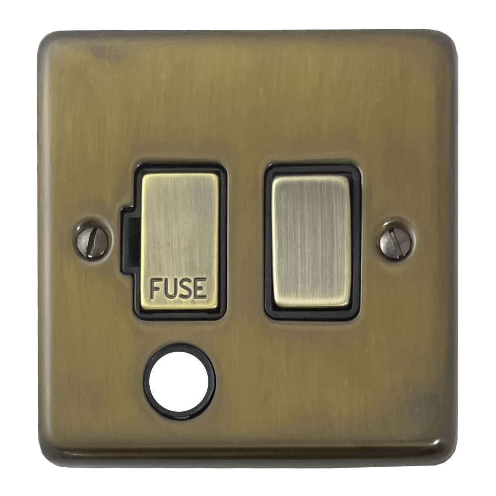 Contour Medium Bronze Switched Fused Spur with Flex Outlet (Black Insert/Antique Brass Switch) - G+H CMBZ356-AB