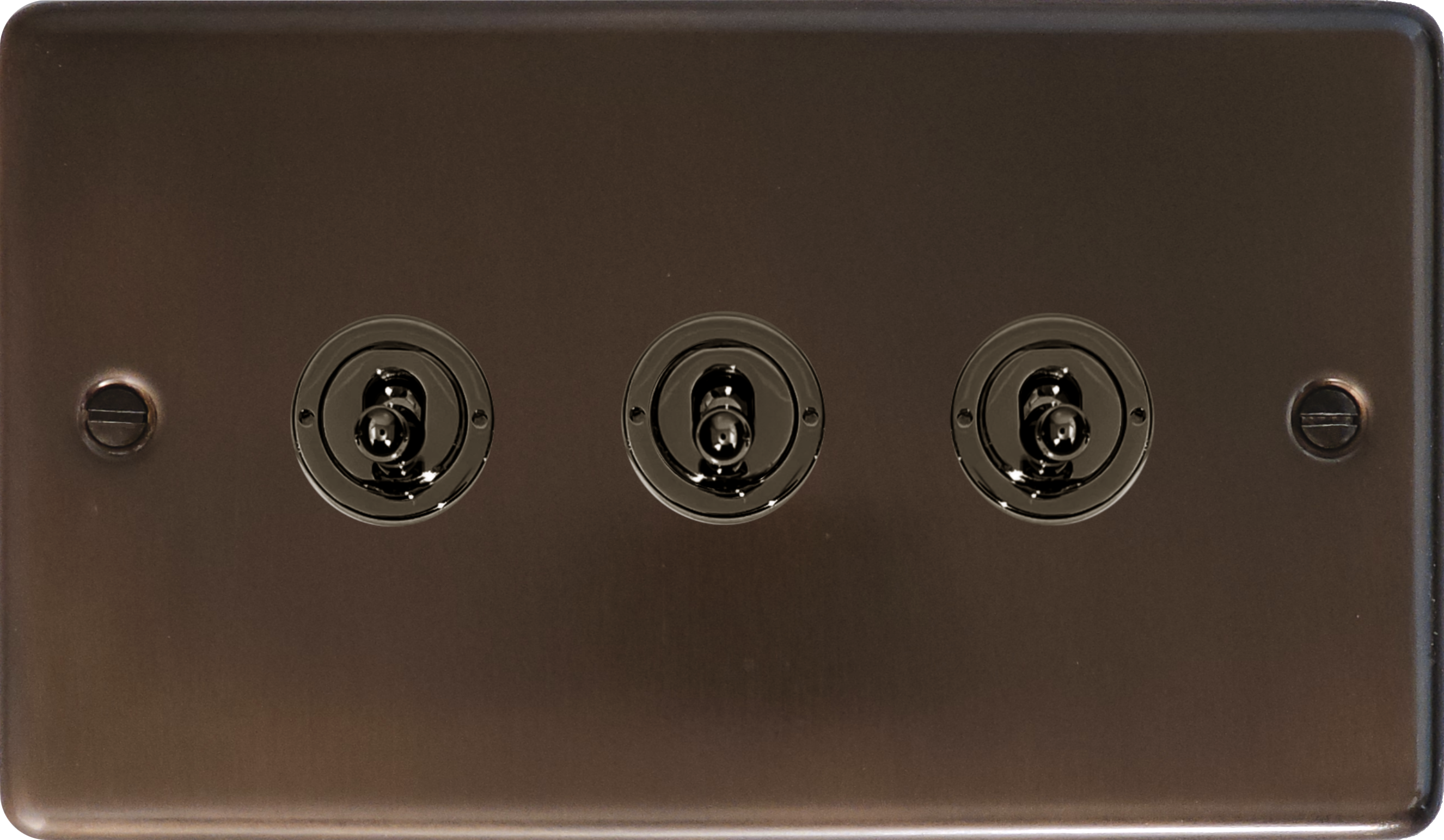 Contour Medium Bronze Toggle Switch (3 Gang/Black Toggle) - G+H CMBZ383-BK