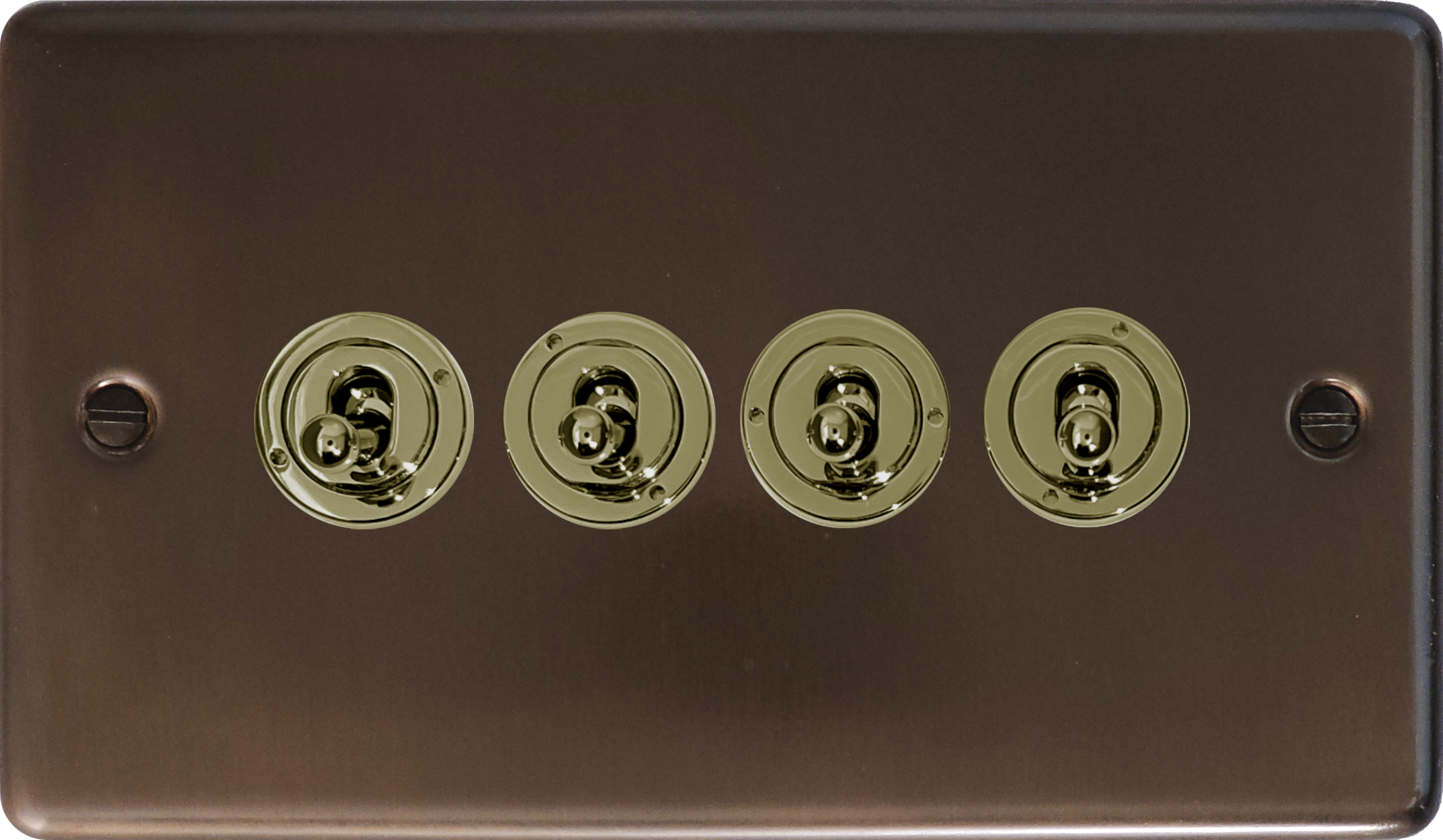 Contour Medium Bronze Toggle Switch (4 Gang/Polished Brass Toggle) - G+H CMBZ384-PB