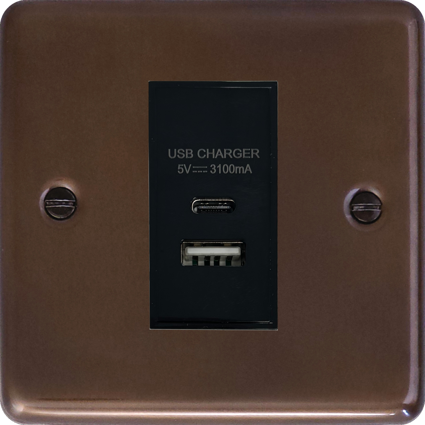 Contour Medium Bronze USB Charger (USB-A and USB-C) (1 Gang) - G+H CMBZ41B