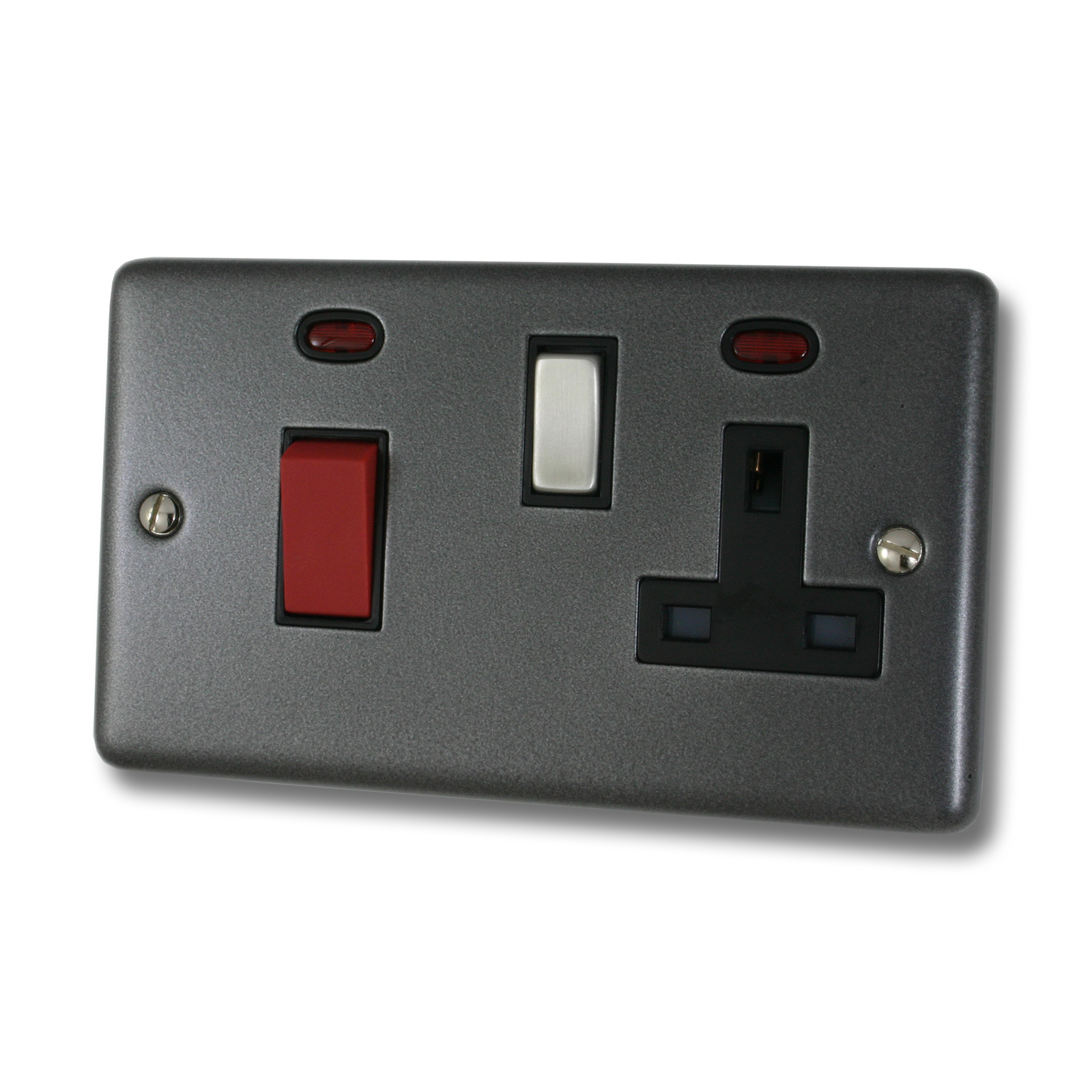 Contour Pewter Cooker Switch with Socket (Black Insert/Steel Switch) - G+H CP329
