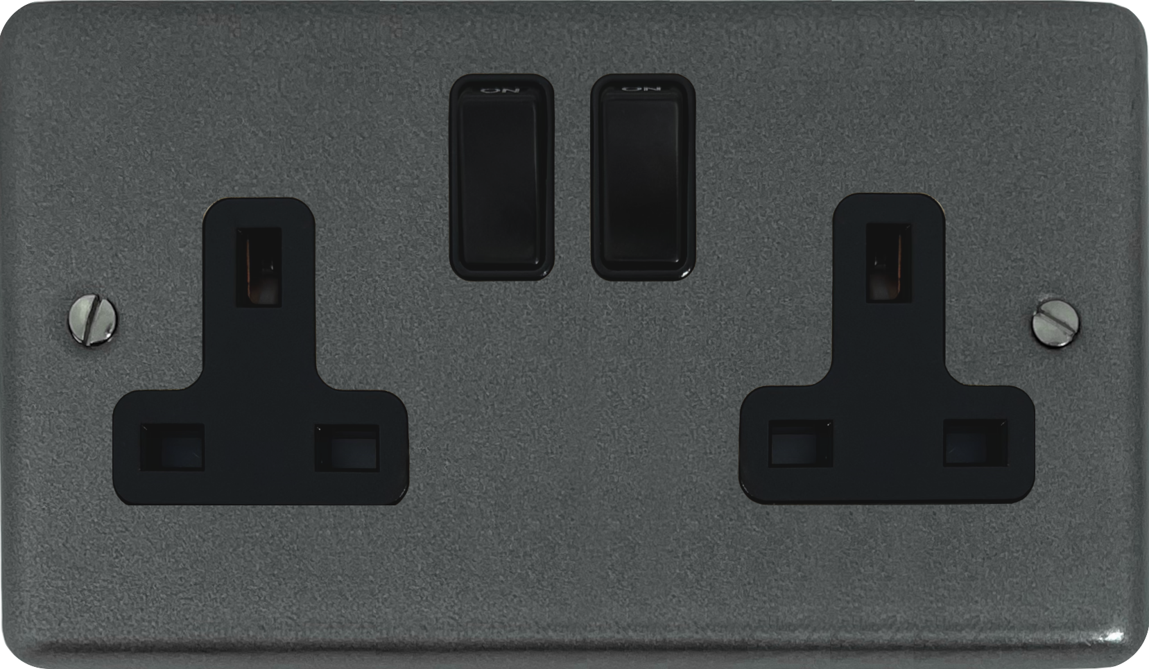 Contour Pewter Double Socket (Black Switches) - G+H CP10B