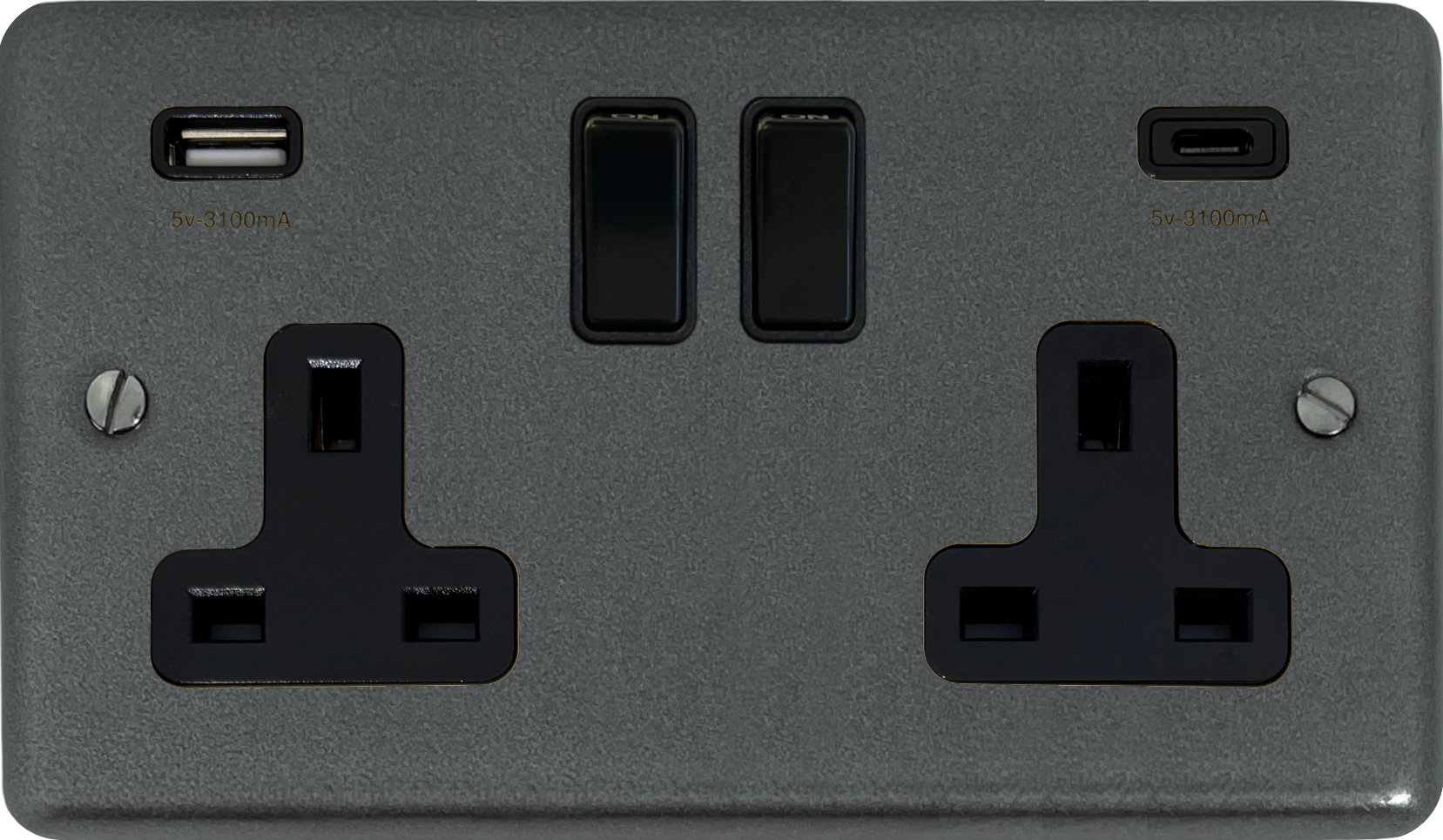 Contour Pewter Double Socket with USB (2 Gang/USB-A and USB-C/Black Switches) - G+H CP911B