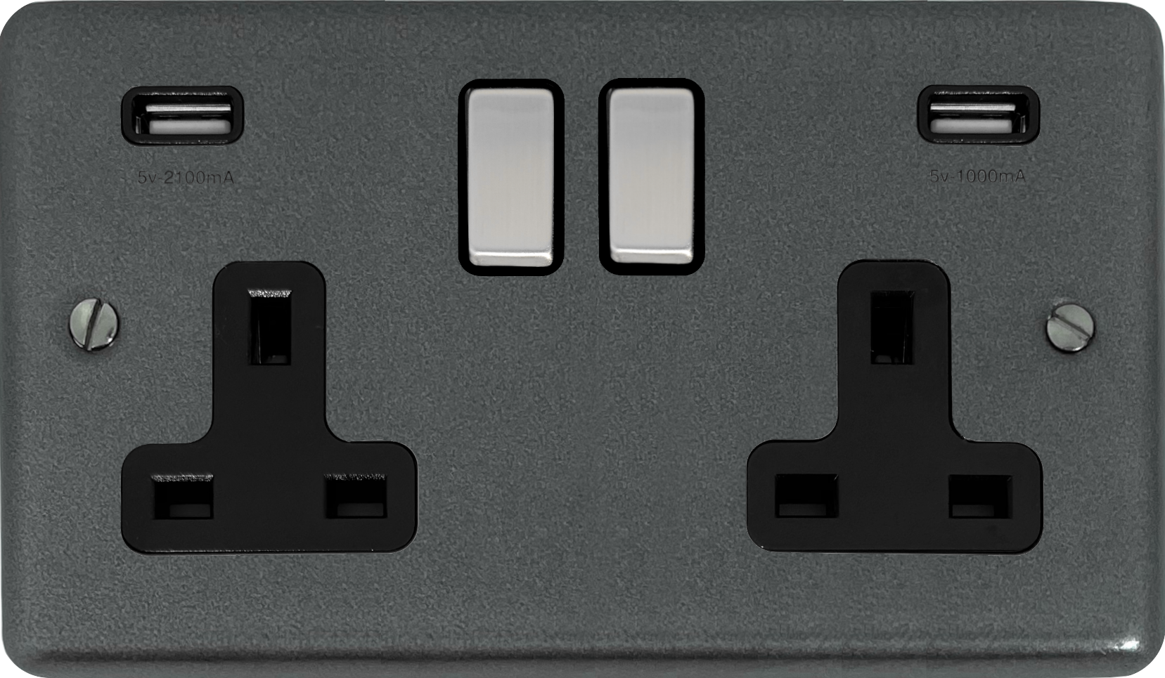 Contour Pewter Double Socket with USB (Black Insert/Steel Switches) - G+H CP3910