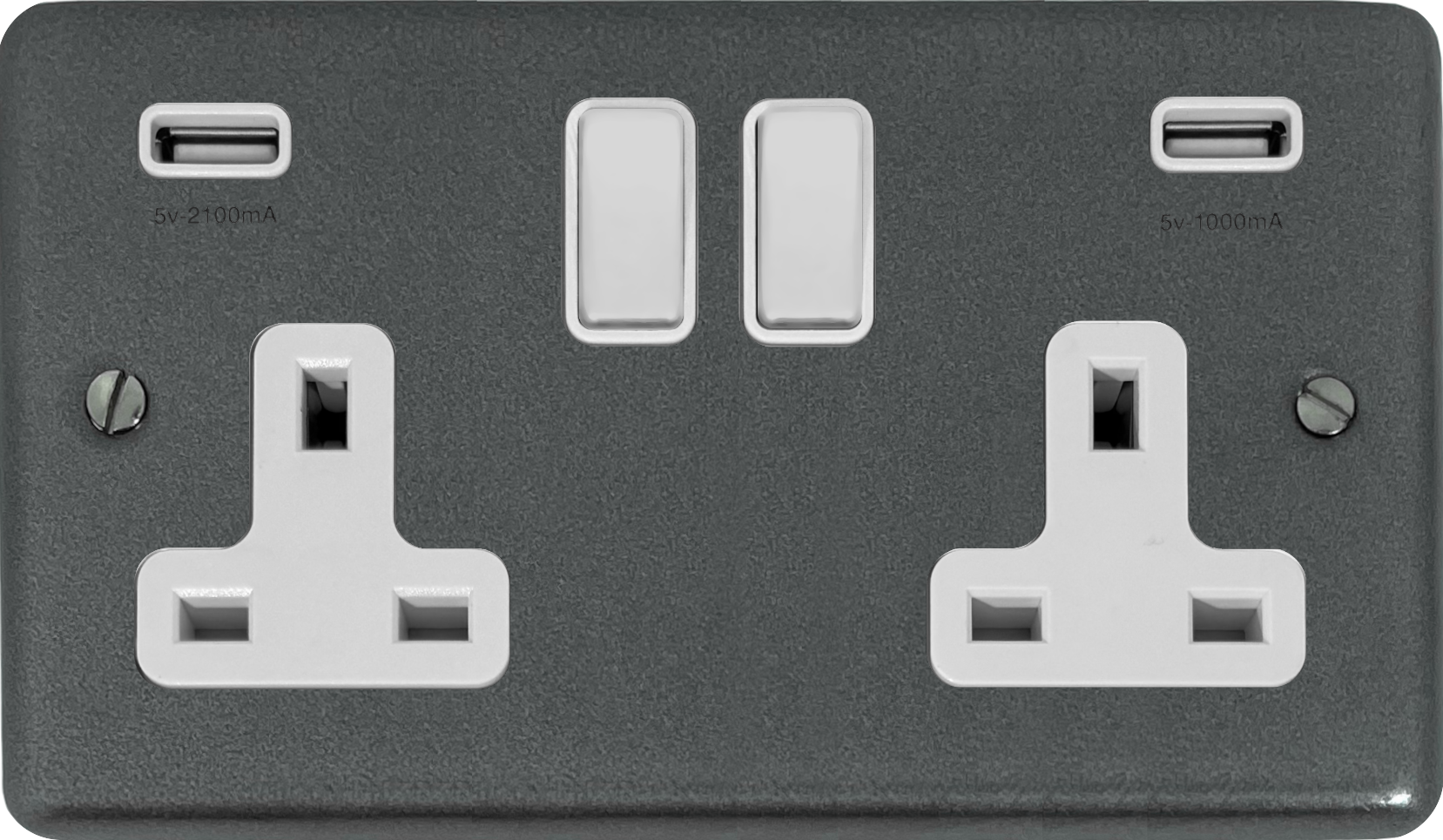 Contour Pewter Double Socket with USB (White Switches) - G+H CP910W