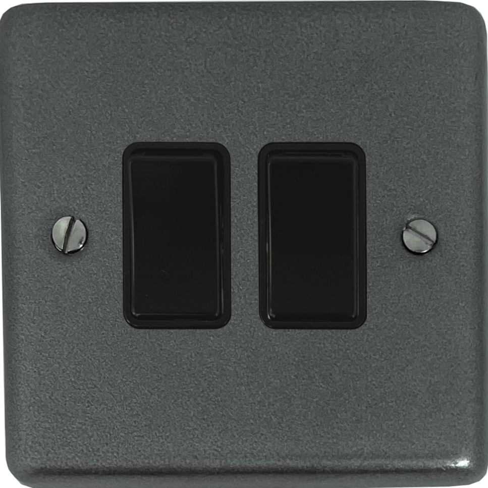 Contour Pewter Light Switch (2 Gang/Black Switches) - G+H CP2B