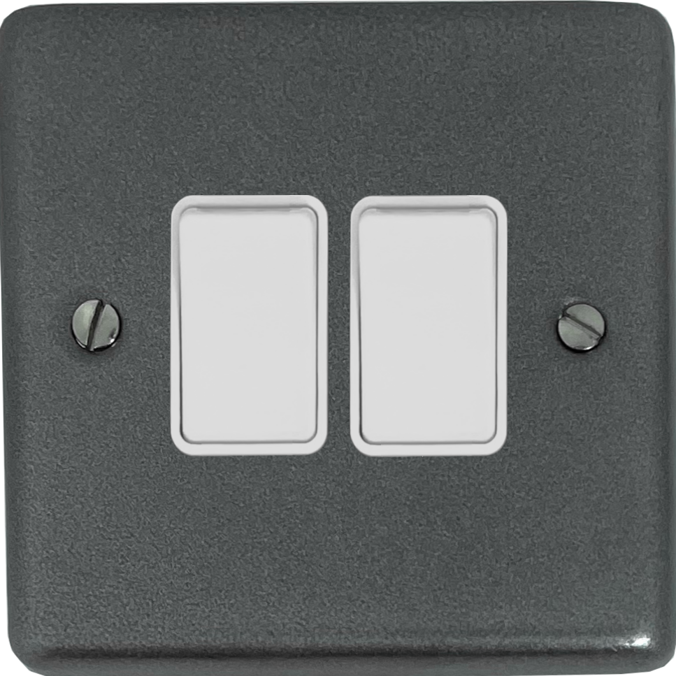 Contour Pewter Light Switch (2 Gang/White Switches) - G+H CP2W