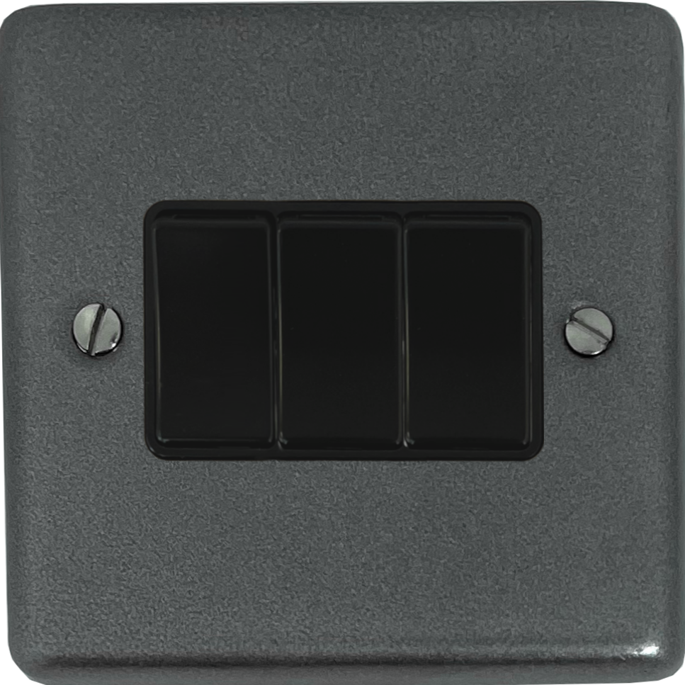Contour Pewter Light Switch (3 Gang/Black Switches) - G+H CP3B