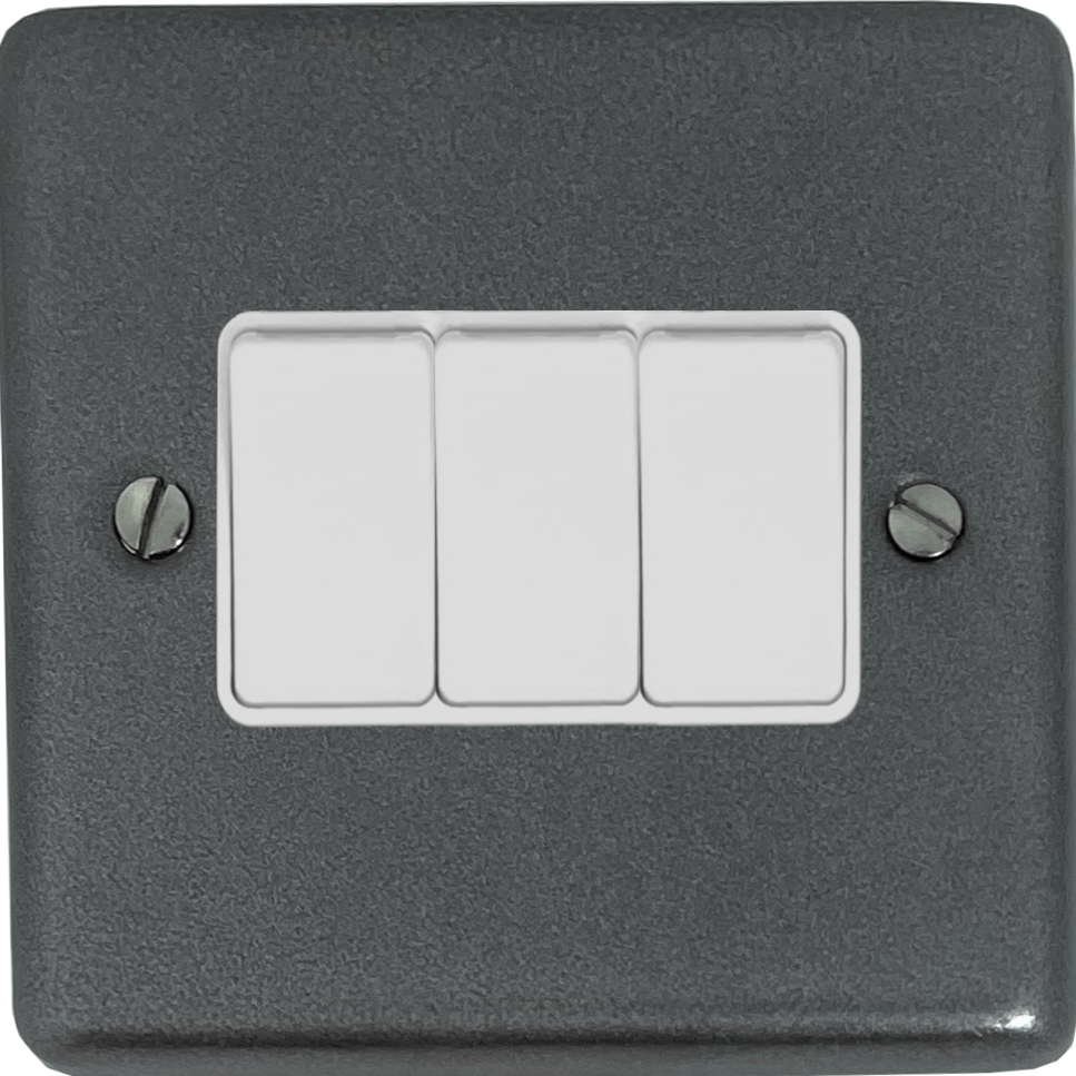 Contour Pewter Light Switch (3 Gang/White Switches) - G+H CP3W