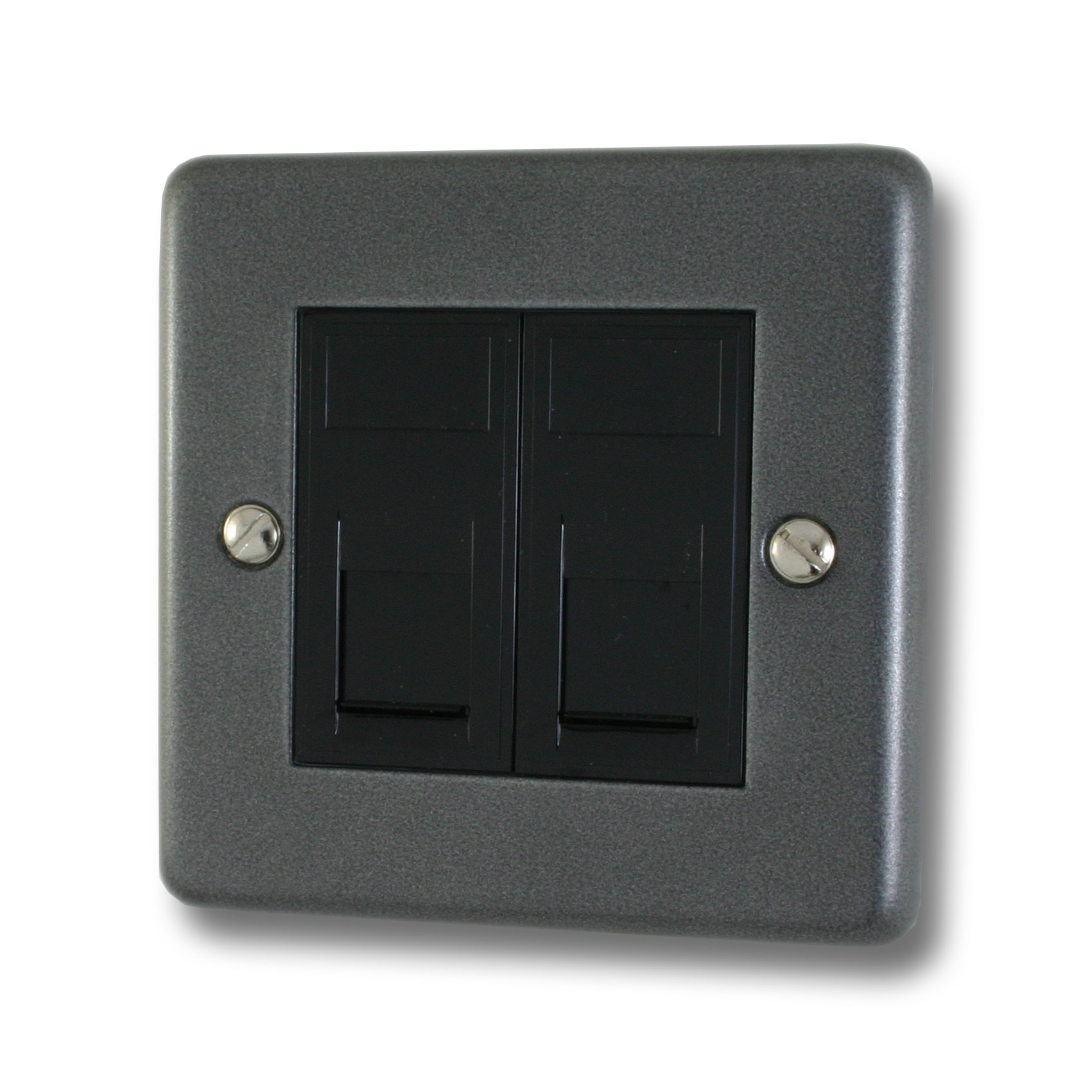 Contour Pewter RJ45 Socket (2 Gang/Black Insert) - G+H CP62B