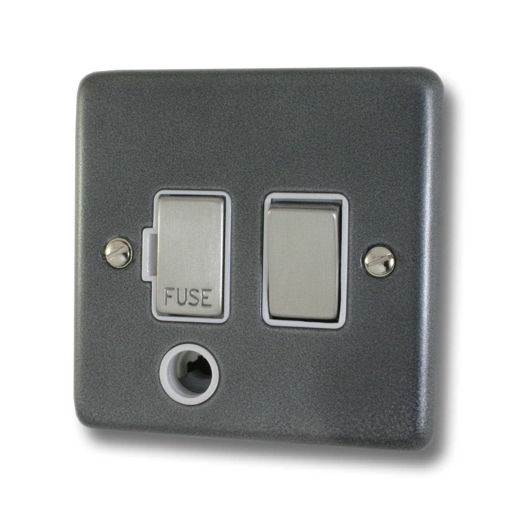 Contour Pewter Switched Fused Spur with Flex Outlet (White Insert/Steel Switch)