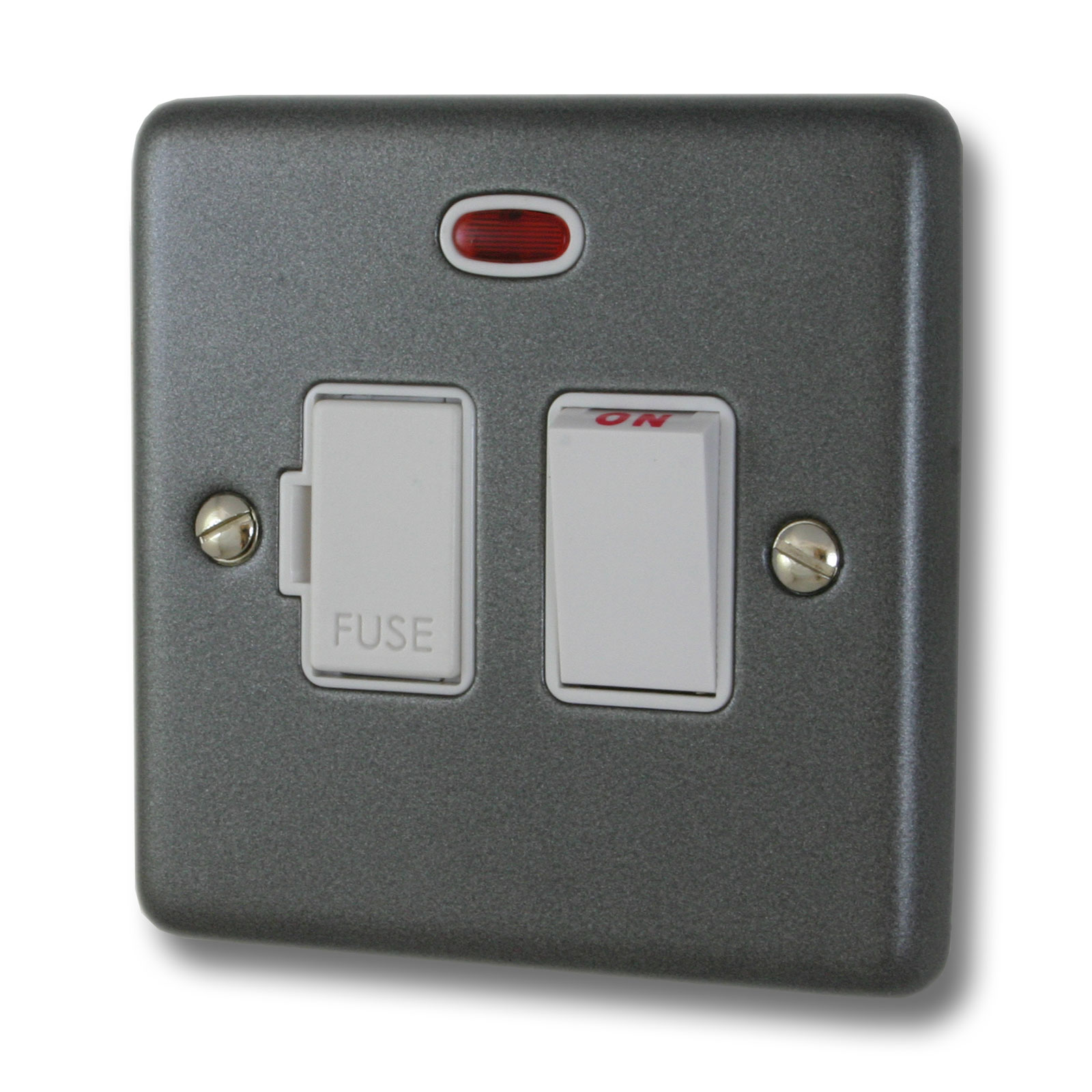 Contour Pewter Switched Fused Spur with Neon (White Switch) - G+H CP27W