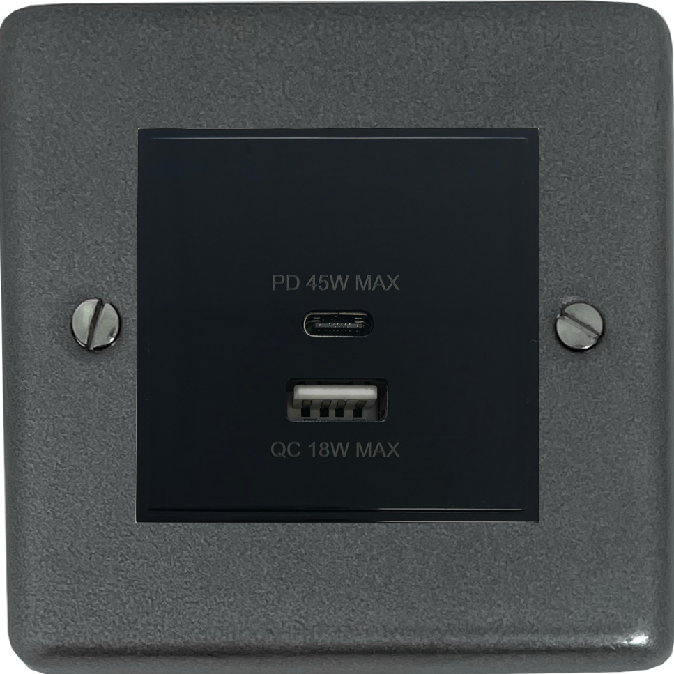 Contour Pewter USB Charger (Dual USB A + C Quick Charge) (1 Gang/Black Insert)