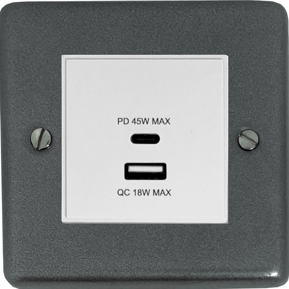 Contour Pewter USB Charger (Dual USB A + C Quick Charge) (1 Gang/White Insert)