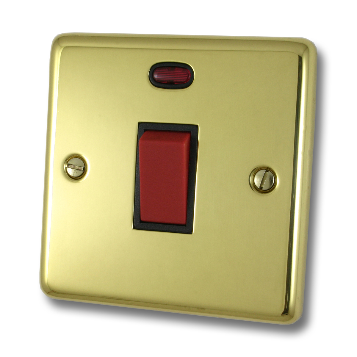Contour Polished Brass 45A DP Switch with Neon (Black Insert) - G+H CB46B