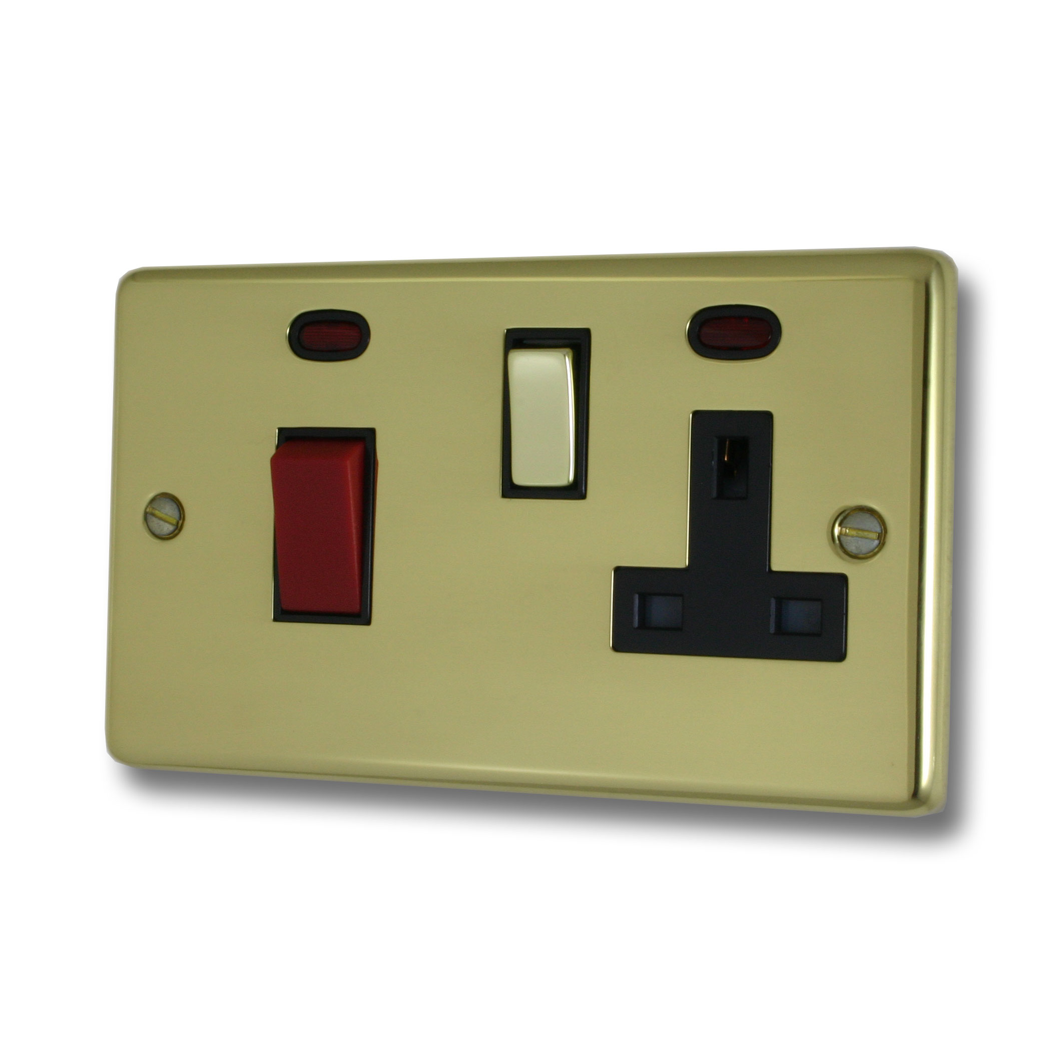 Contour Polished Brass Cooker Switch with Socket (Brass Switch) - G+H CB329