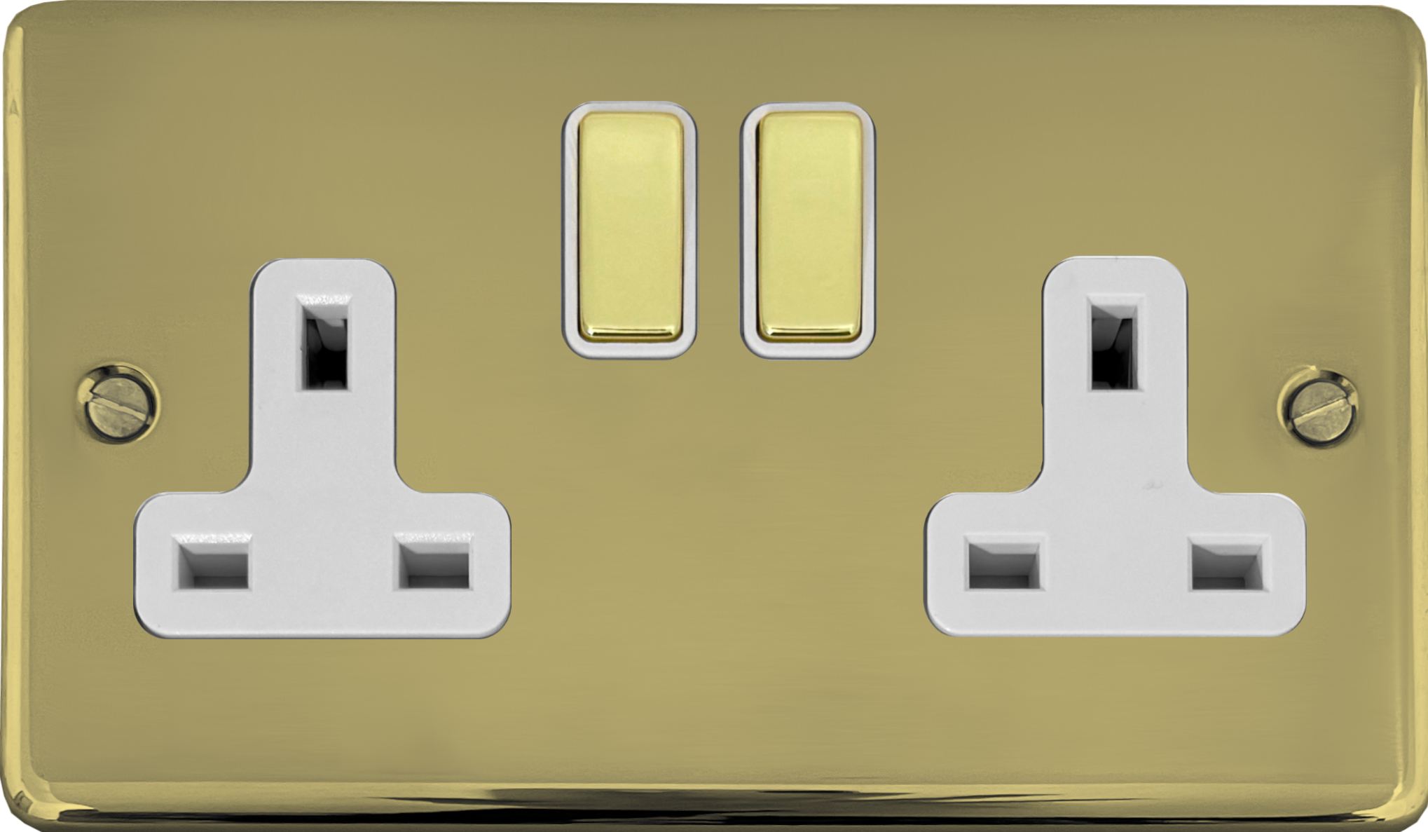 Contour Polished Brass Double Socket (Brass Switches/White Inserts) - G+H CB210
