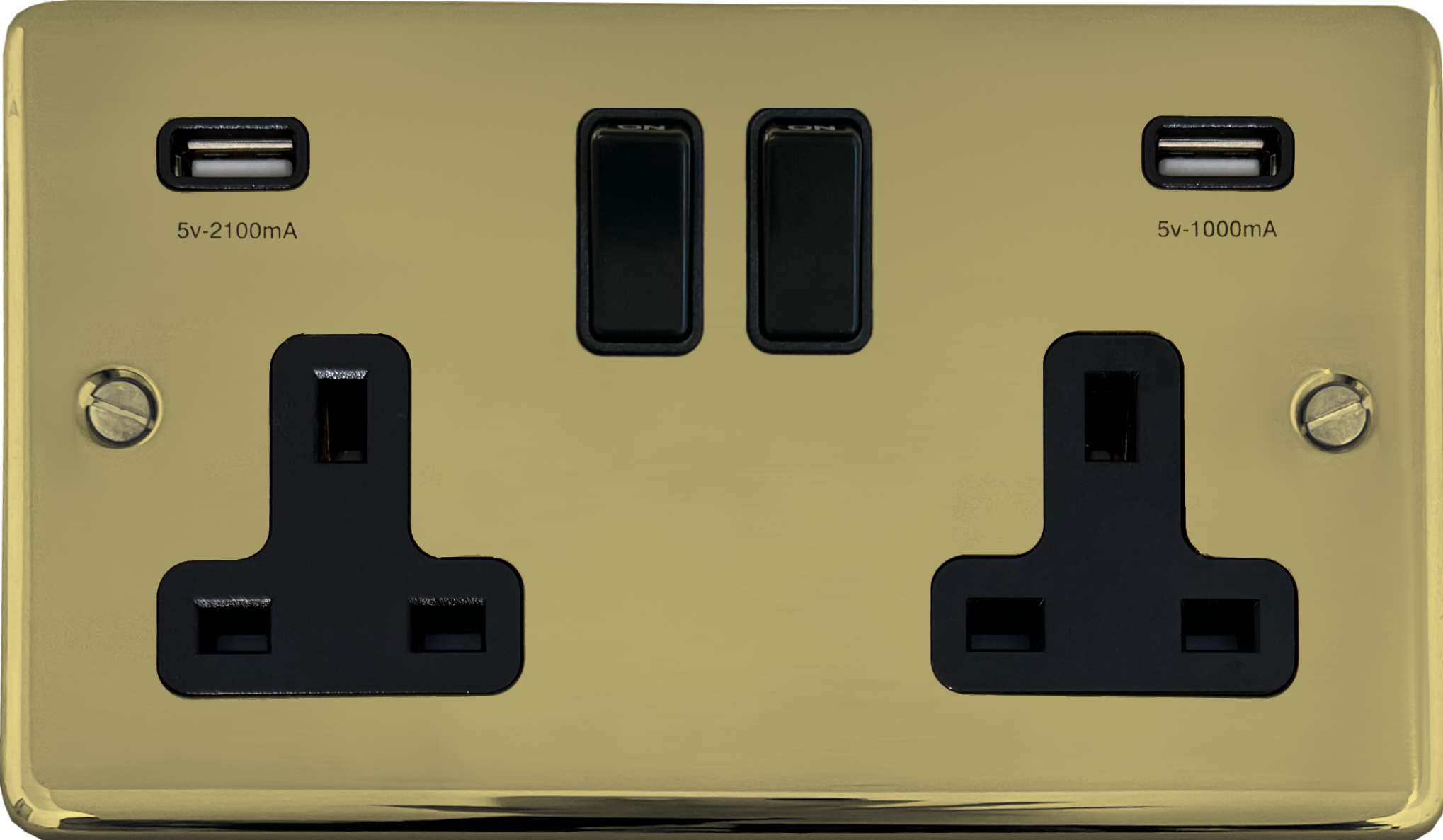 Contour Polished Brass Double Socket with USB (Black Switches) - G+H CB910B