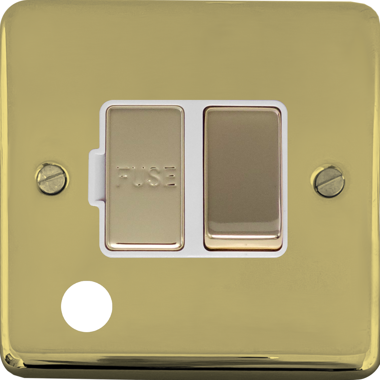 Contour Polished Brass Fused Spur with Flex Outlet (Brass Switch/White Inserts) - G+H CB256