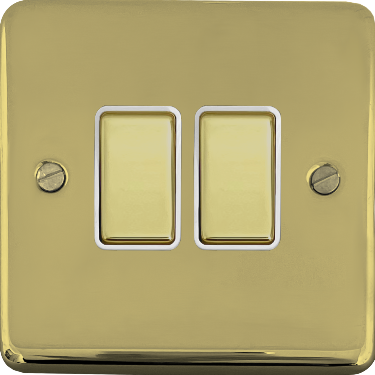Contour Polished Brass Hand Waxed Light Switch (2 Gang/Brass Switches/White Inserts)