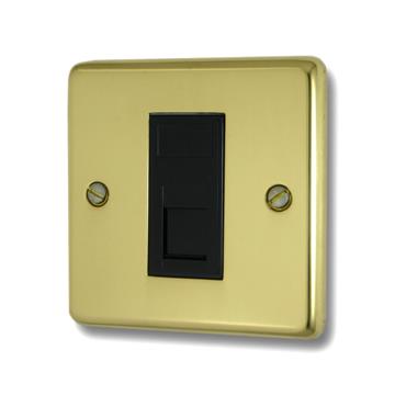 Contour Polished Brass Hand Waxed RJ45 Socket (1 Gang/Black Insert) - G+H CHX61B