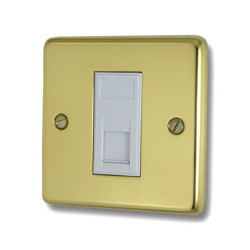 Contour Polished Brass Hand Waxed RJ45 Socket (1 Gang/White Insert) - G+H CHX61W