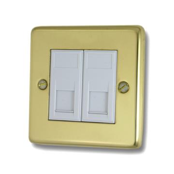 Contour Polished Brass Hand Waxed RJ45 Socket (2 Gang/White Insert) - G+H CHX62W