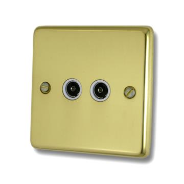 Contour Polished Brass Hand Waxed TV Socket (2 Gang/White Insert) - G+H CHX36W