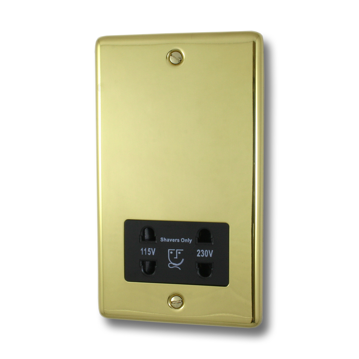 Contour Polished Brass Shaver Socket (Black Insert)