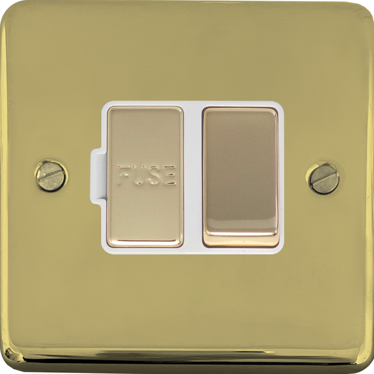 Contour Polished Brass Switched Fused Spur (Brass Switch/White Inserts) - G+H CB257