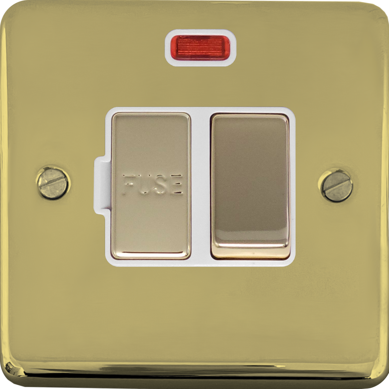 Contour Polished Brass Switched Fused Spur with Neon (Brass Switch/White Inserts) - G+H CB227