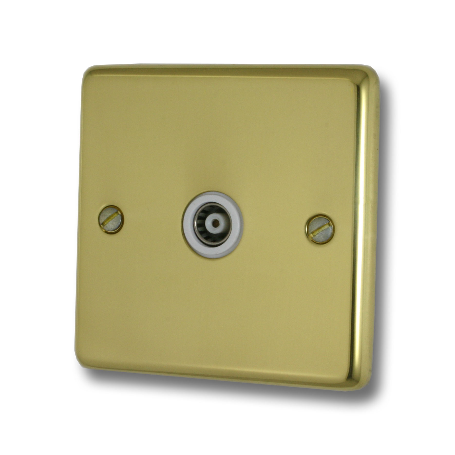 Contour Polished Brass TV Socket (White Insert) - G+H CB35W
