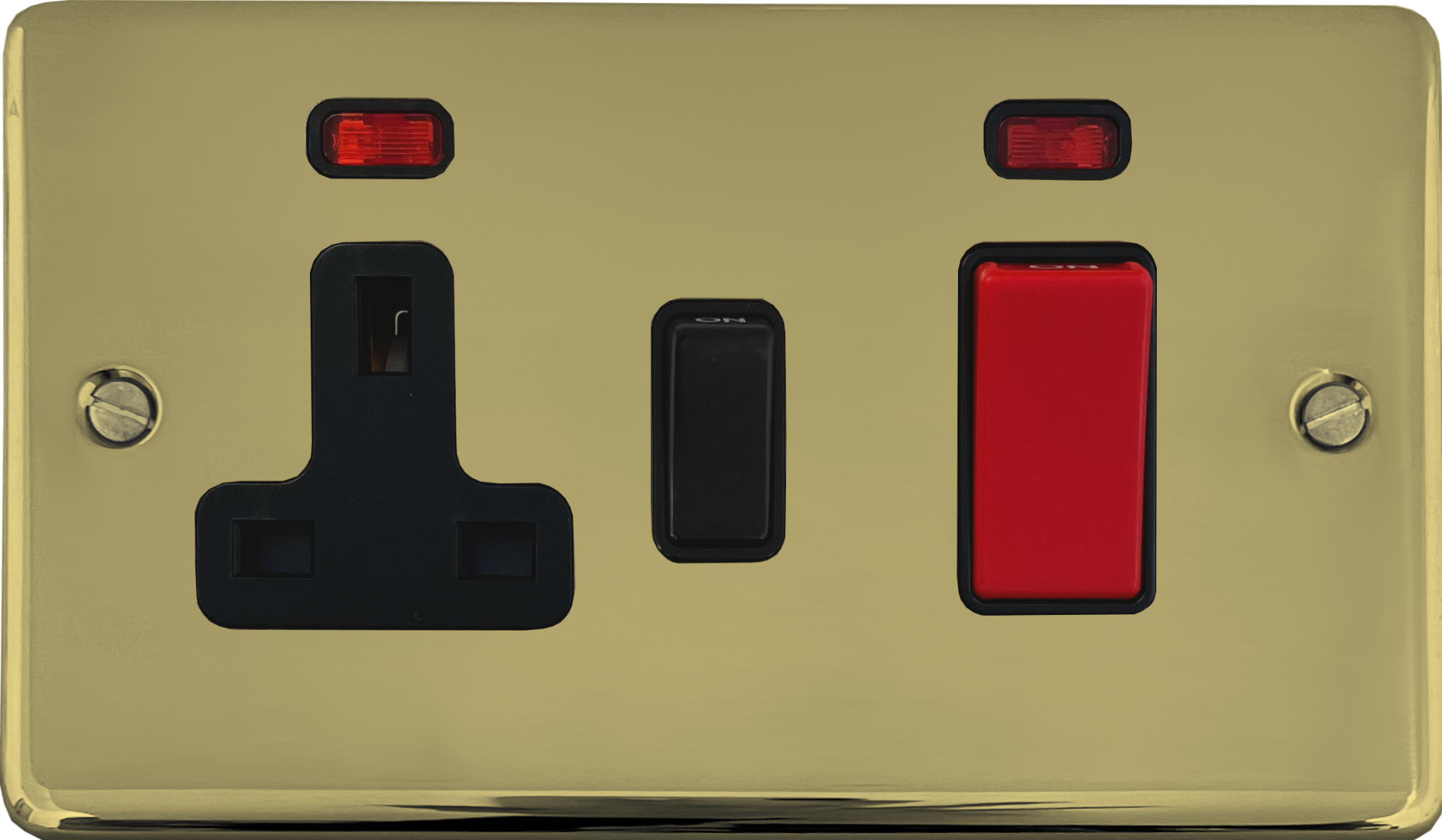 Contour Polished Brass Unlacquered Cooker Switch with Socket (Black Switch) - G+H CBUL29B
