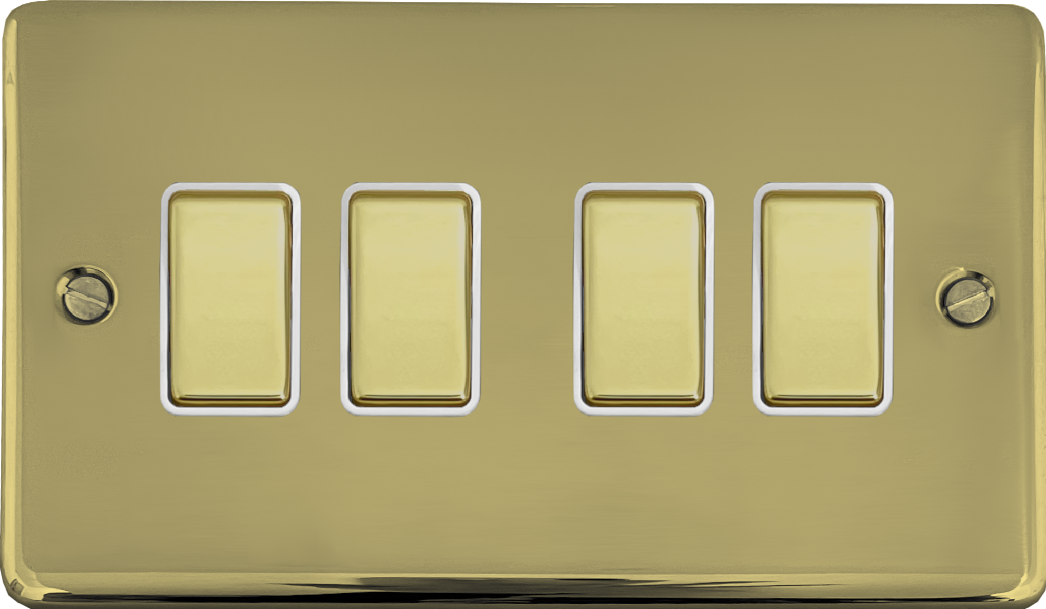 Contour Polished Brass Unlacquered Light Switch (4 Gang/Brass Switches/White Inserts)