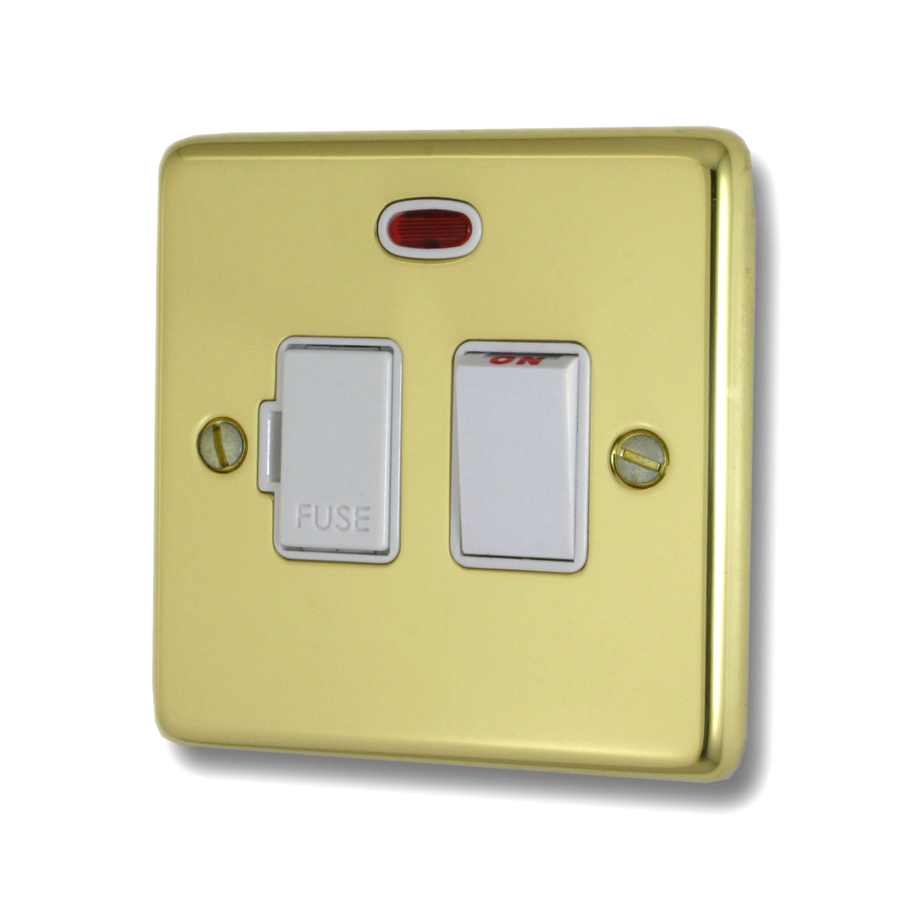 Contour Polished Brass Unlacquered Switched Fused Spur with Neon (White Switch)