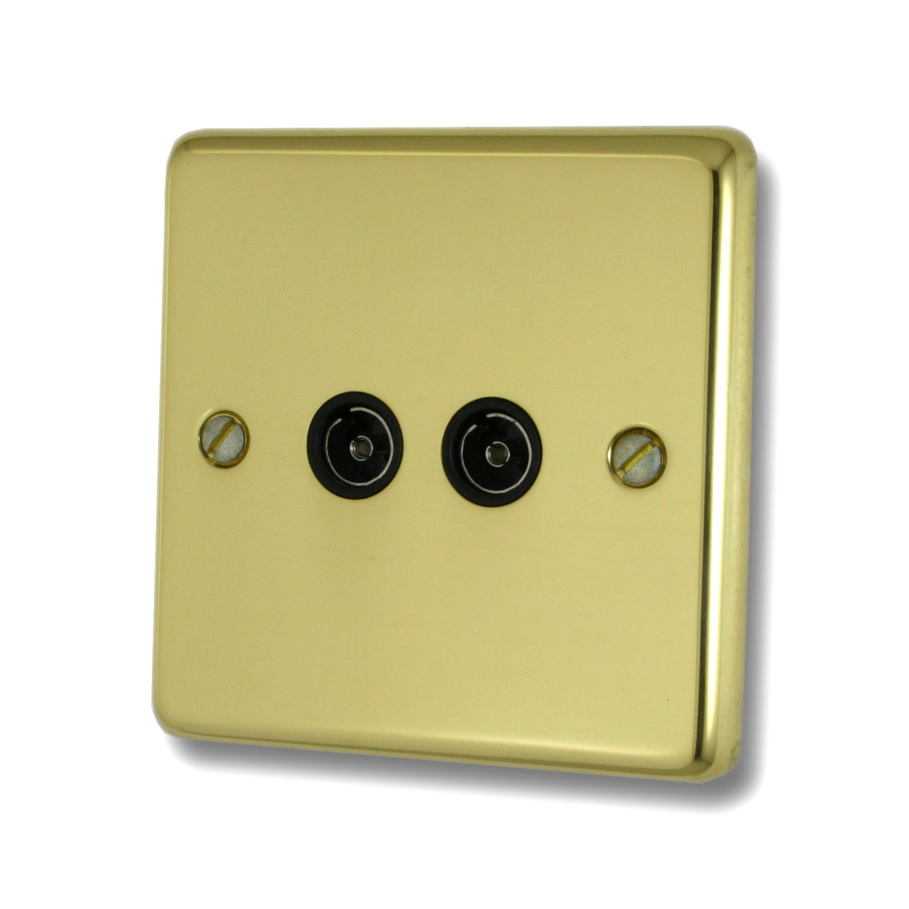 Contour Polished Brass Unlacquered TV Socket (2 Gang/Black Insert) - G+H CBUL36B