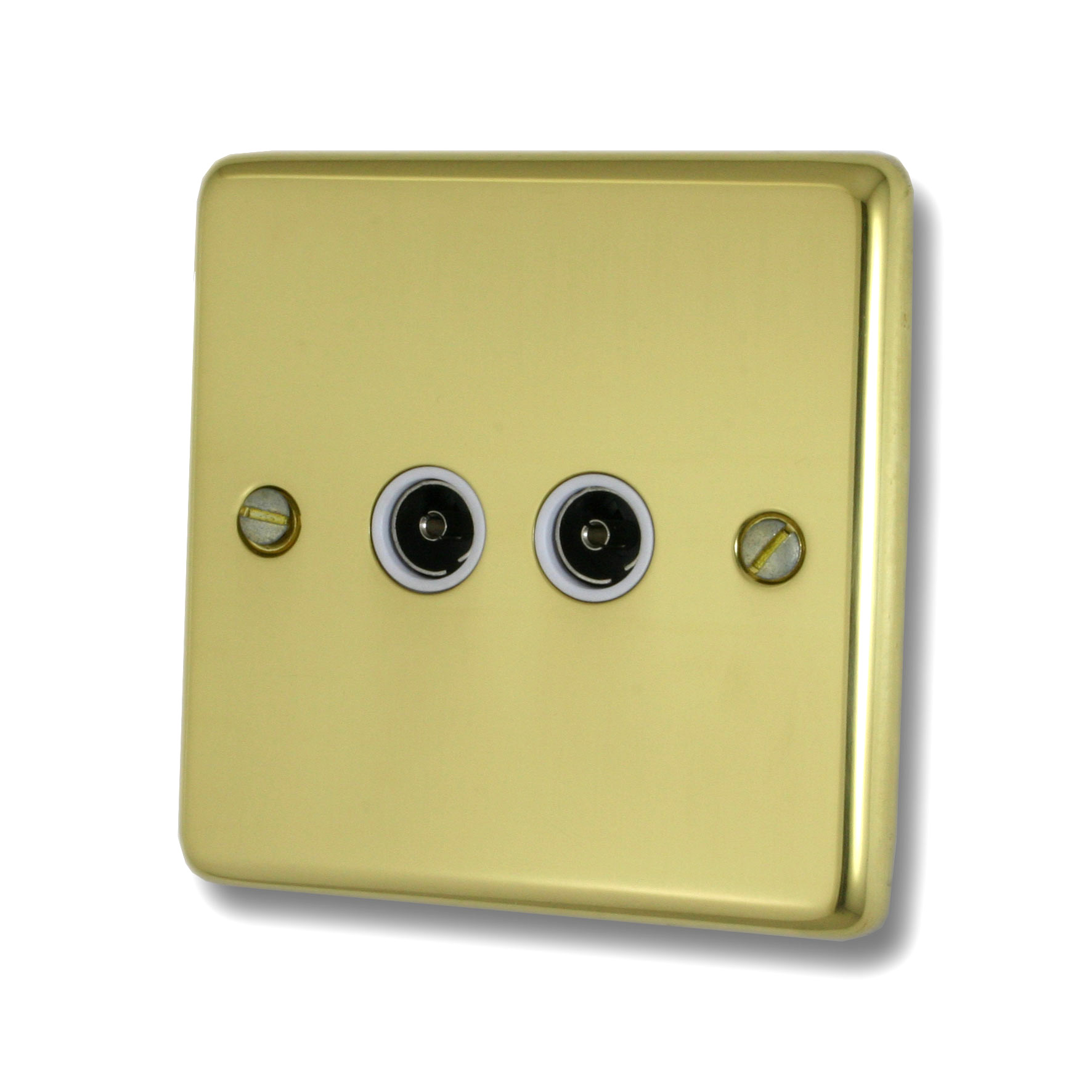 Contour Polished Brass Unlacquered TV Socket (2 Gang/White Insert) - G+H CBUL36W