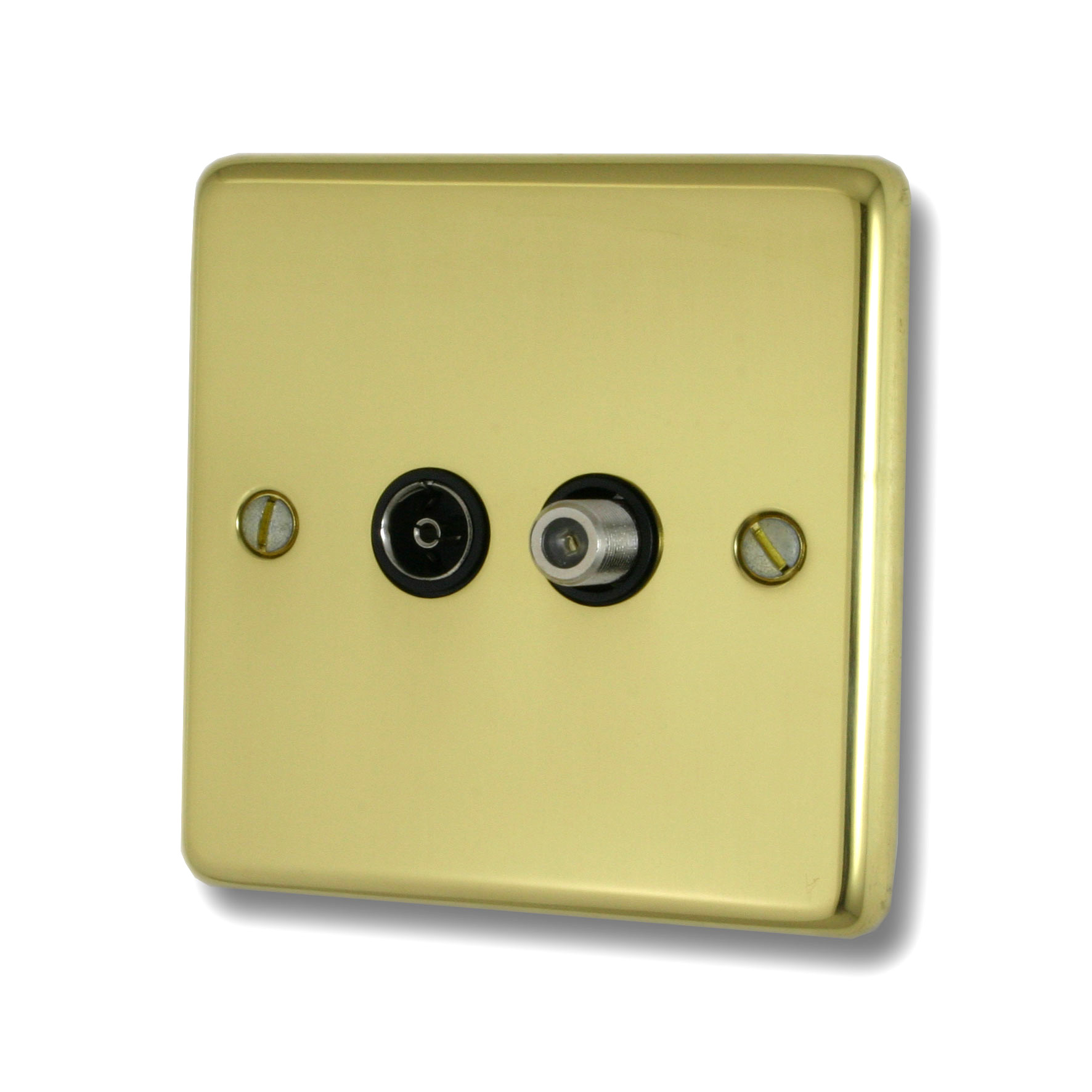Contour Polished Brass Unlacquered TV/Satellite Socket (Black Insert) - G+H CBUL38B