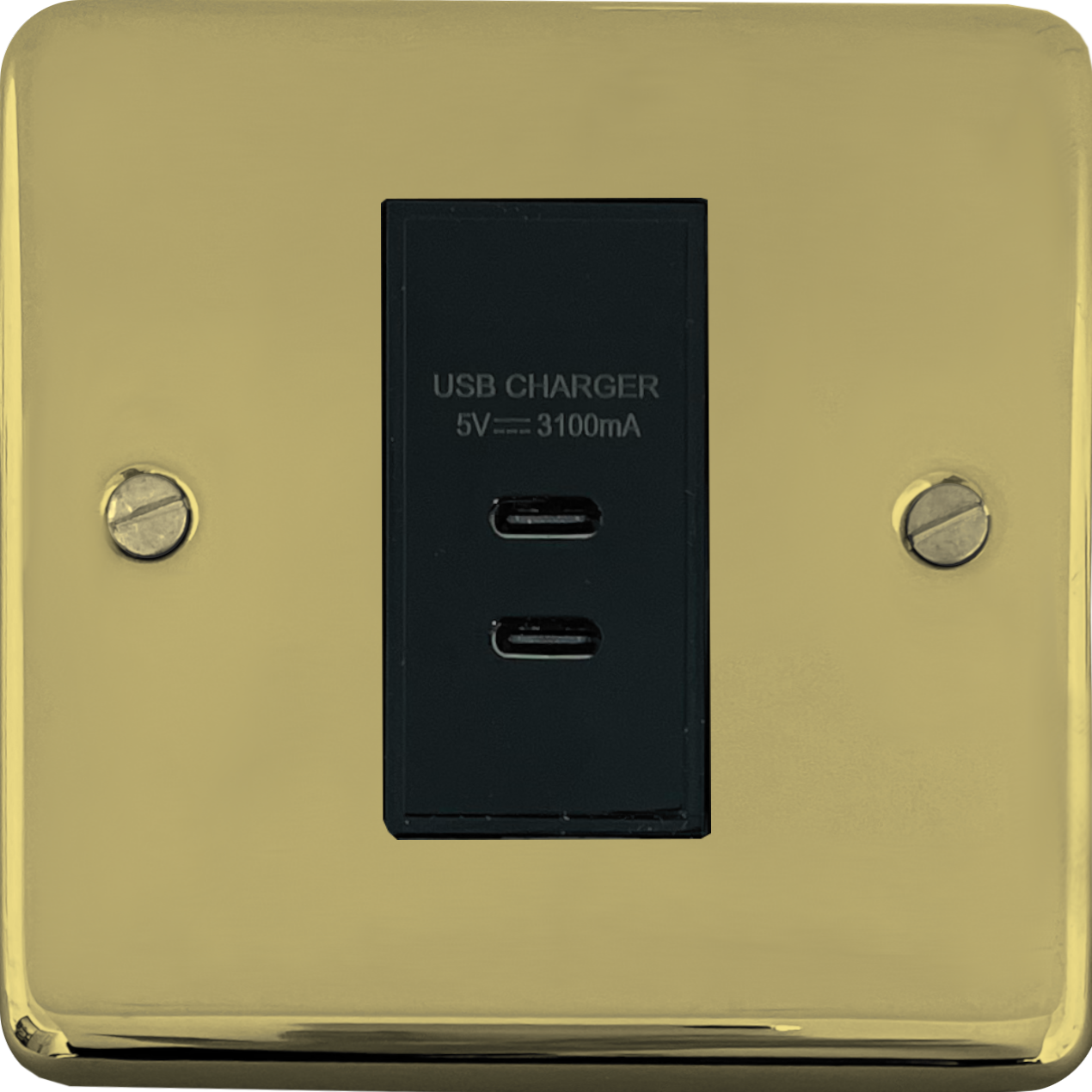 Contour Polished Brass Unlacquered USB Charger (2x USB-C) (1 Gang/Black Insert) - G+H CBUL42B