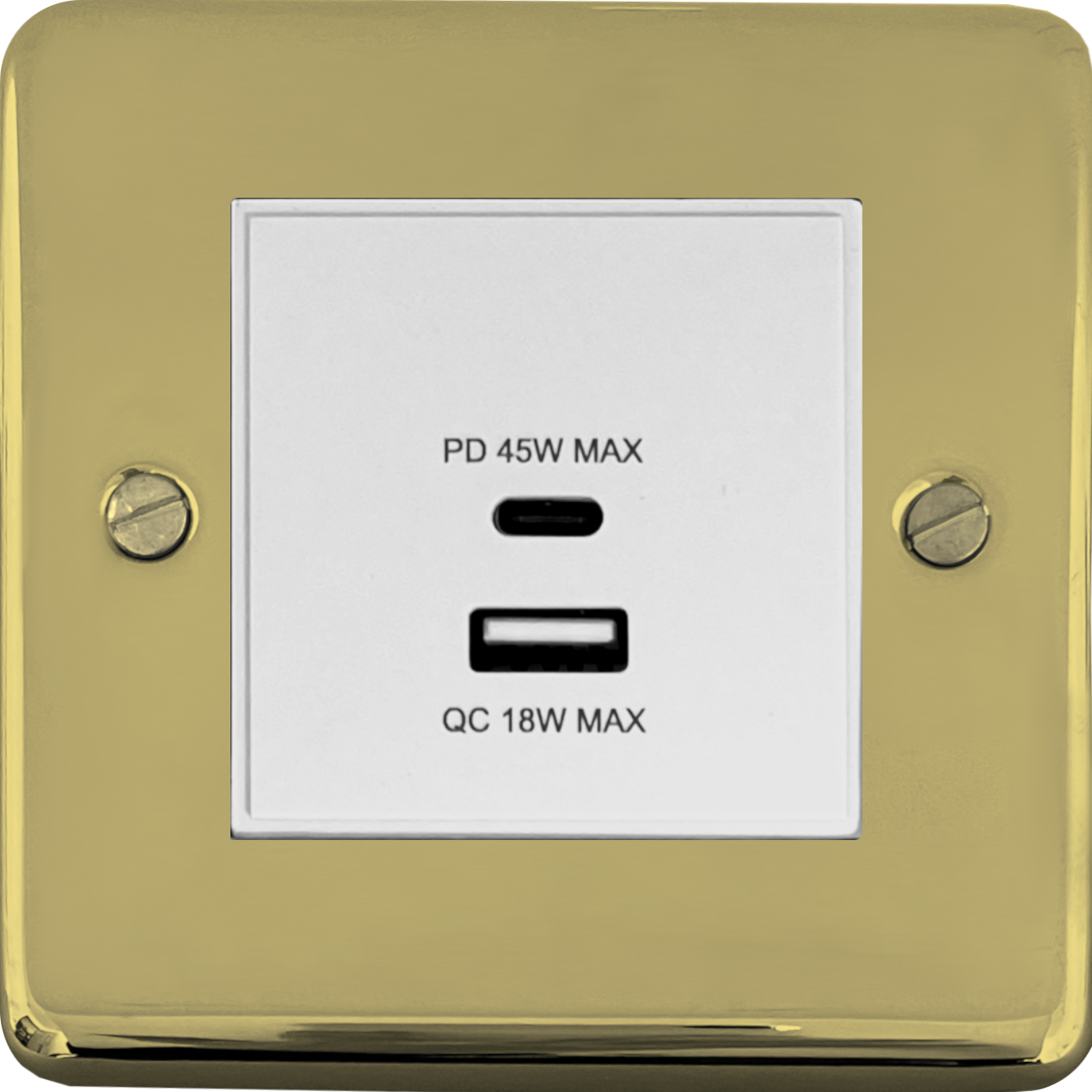 Contour Polished Brass Unlacquered USB Charger (Dual USB A + C Quick Charge) (1 Gang/White Insert) - G+H CBUL43W