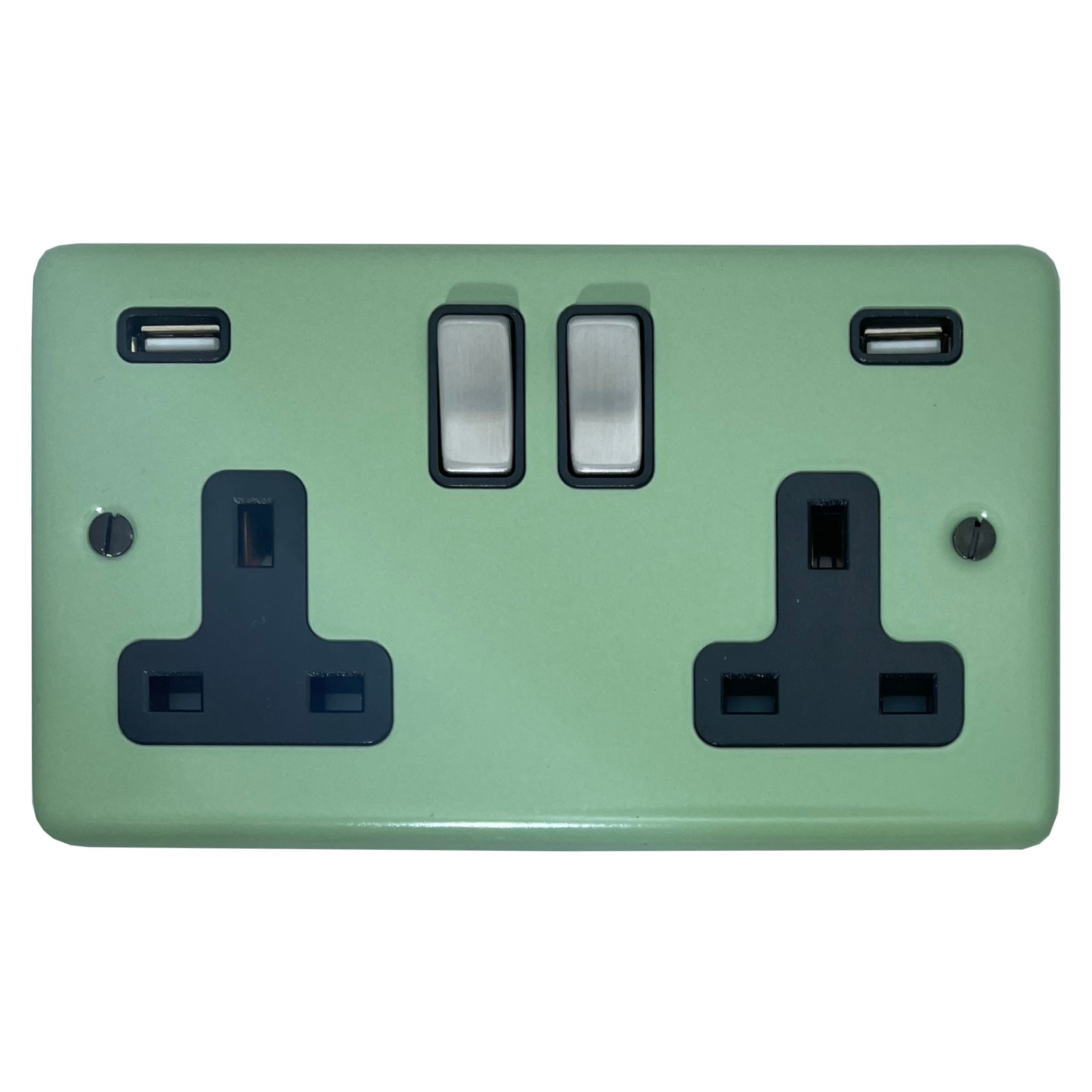 Contour Sage Green Double Socket with USB (Black Insert/Steel Switches) - G+H CSG3910