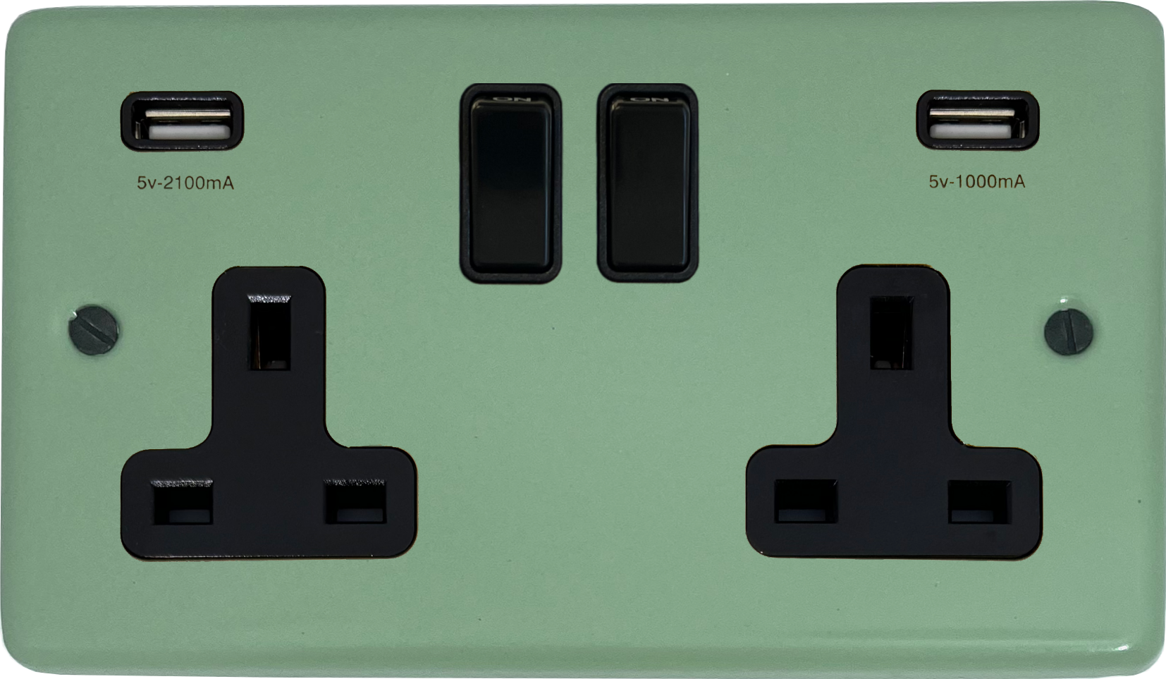 Contour Sage Green Double Socket with USB (Black Switches) - G+H CSG910B
