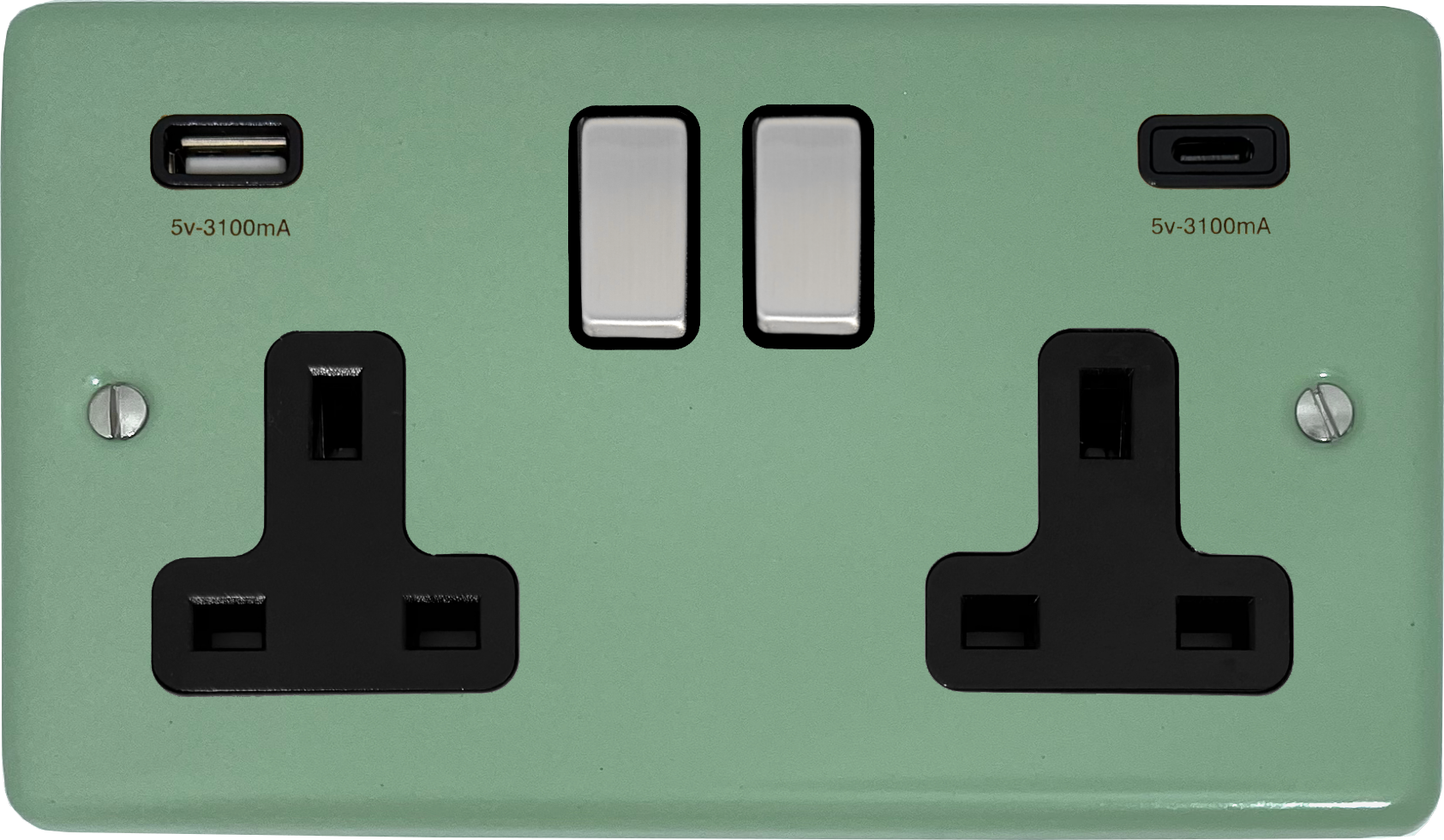 Contour Sage Green Double Socket with USB (USB-A and USB-C/Black Inserts/Steel Switches) - G+H CSG3911-SC