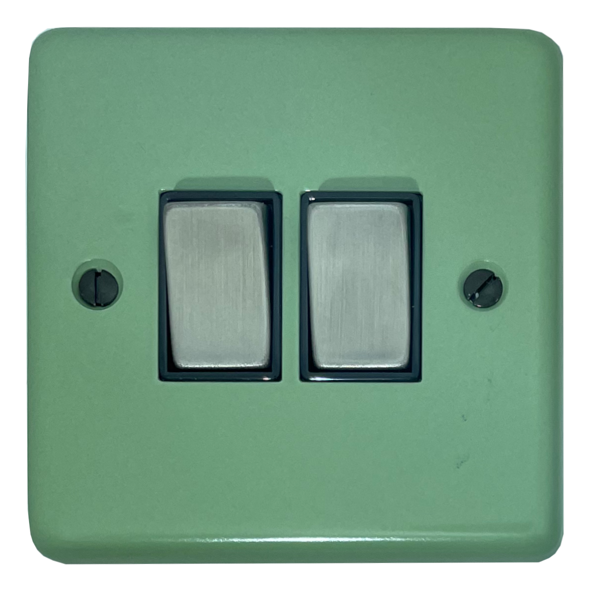 Contour Sage Green Light Switch (2 Gang/Black Insert/Steel Switches) - G+H CSG302